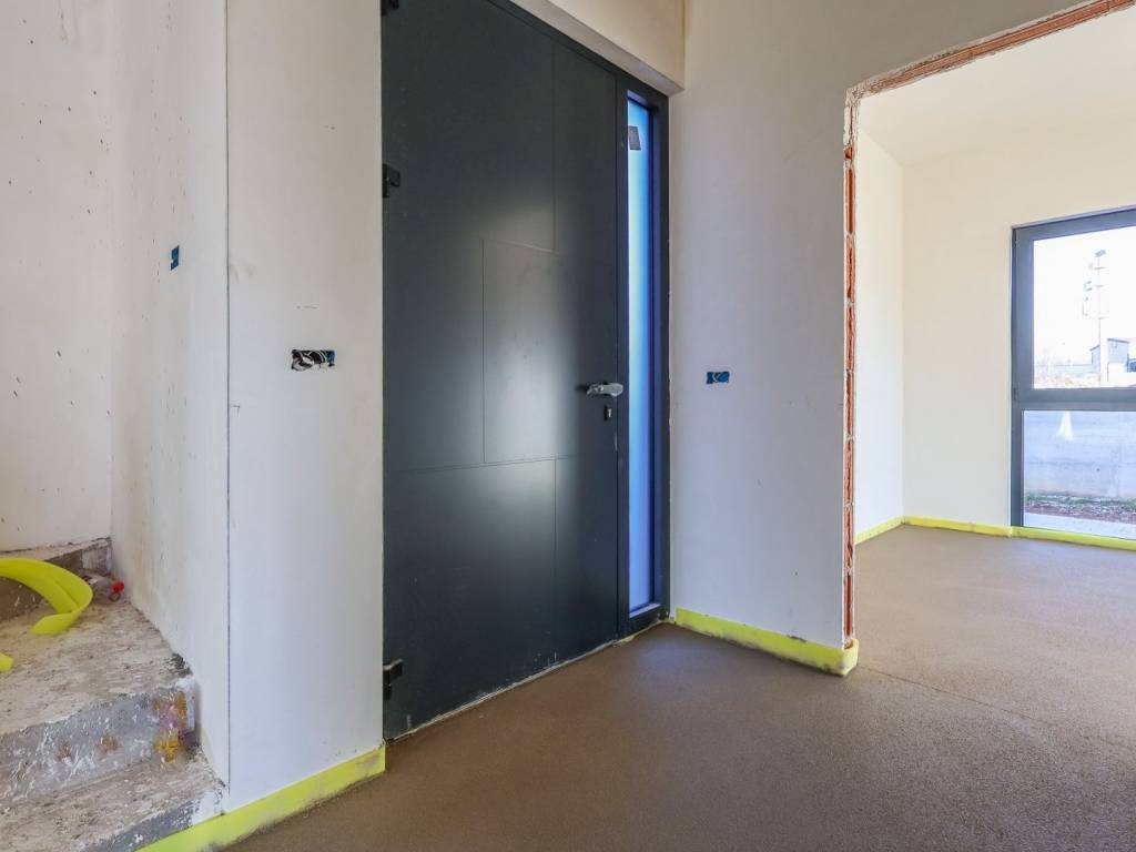 The exterior joinery is made of PVC joinery, with el. blind lifters and built-in mosquito nets. Internal door: wood design made of natural veneer treated with azure coating.