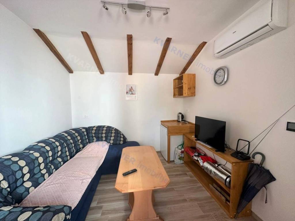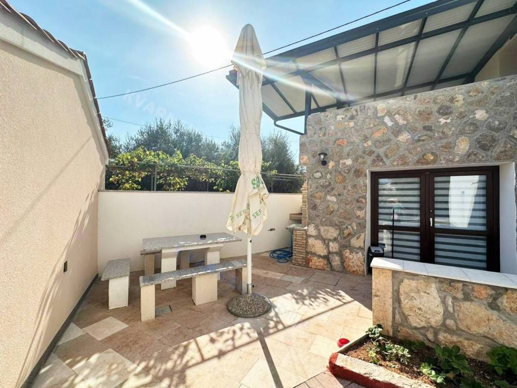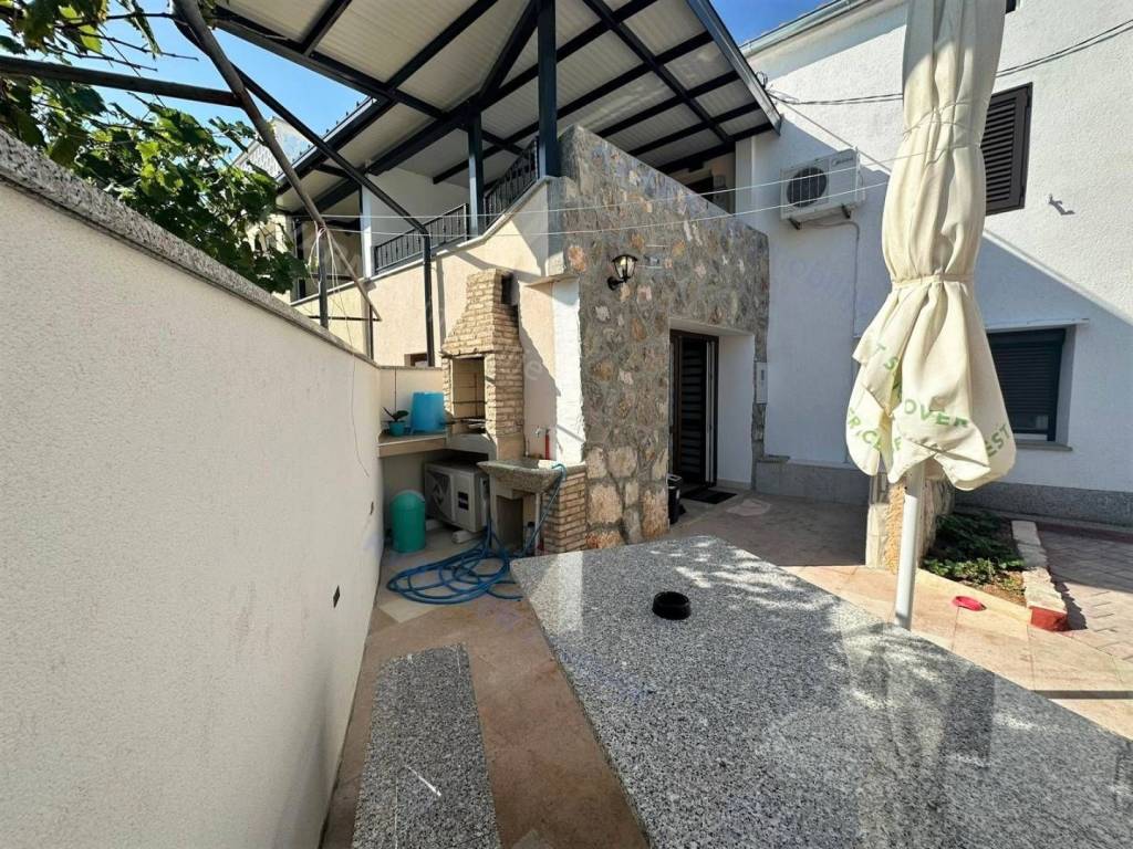 The house has a living area of approximately 80 m2. It consists of a kitchen with a dining area and a living room, as well as a bathroom on the ground floor. From the kitchen, there is access to a terrace with an outdoor barbecue and a space for socializing. Internal stairs lead to the first floor, where there is a bedroom with access to a covered terrace offering views of the greenery. There is another bedroom in the attic. On the property of the house, there is an auxiliary building with an area of approximately 20 m2, which is set up as a studio apartment with its own bathroom. The house is furnished and equipped and is being sold as such. The ground floor of the house and the auxiliary building are equipped with air conditioning and underfloor heating. There is parking space available on the property.