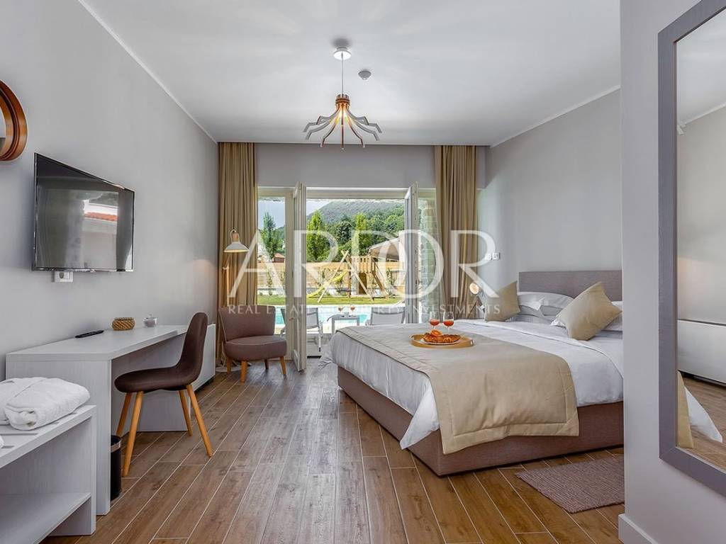Underfloor heating is distributed throughout the house, heat pumps, air-conditioned Daikin air-conditioned rooms, solar panels for water heating, wellness with sauna and jacuzzi tub, gym, children's playroom, top equipment and custom furniture, first-class materials used in construction and calm and quiet locations with beautiful views are just some of the benefits that will satisfy even the most discerning customers.