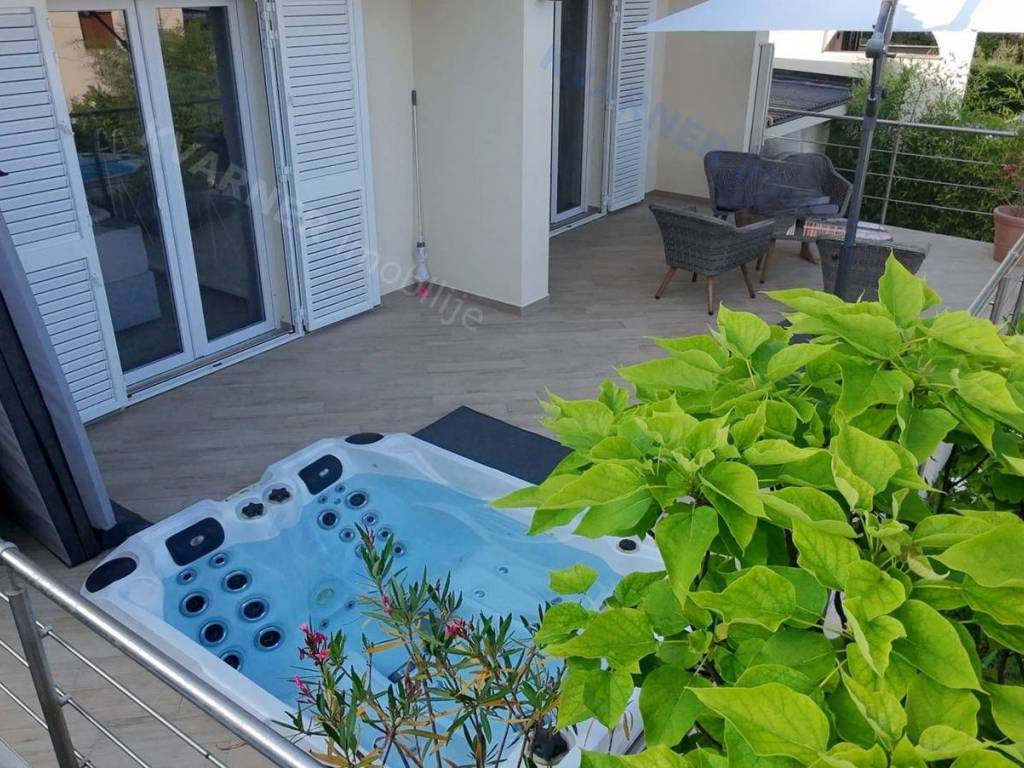 For sale is a detached ground floor house only 100 meters from the beach! The house consists of 2 bedrooms + 1 bedroom with a separate entrance, a bathroom, a kitchen with a living room that opens onto a beautiful, spacious terrace with a jacuzzi tub. From the terrace, there is an unobstructed sea view! On the property, there is an auxiliary wooden house and additional space, as well as parking for 2 cars. The house is sold fully furnished and is a good opportunity for investment and tourist rental.