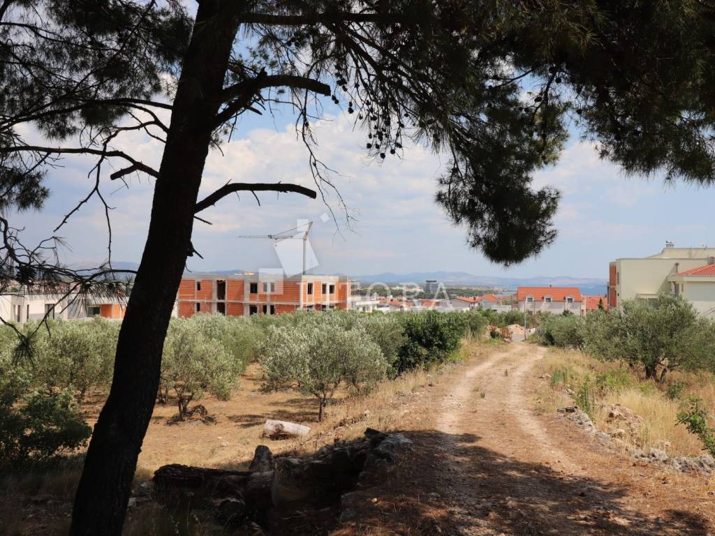 Vodice – građevinsko zemljište površine 2.445 m² s pogledom na more Prema urbanističkom planu grada Vodica, zemljište se nalazi u zoni M – 1.3. Parcela je većim dijelom pravilnog oblika, s blagim nagibom, a prekrivena je borovom šumom i niskim raslinjem. Kompletna infrastruktura nalazi se uz zemljište. Udaljenost do mora/plaže je 1.500 m, a do centra grada 1.100 m. Mogućnost gradnje obiteljskih kuća ili višestambene zgrade. Min. 400 m2 površine; Etažnost max.= Po+Su+Pr+2; Visina max.= 10,0 m; Min. 30% površine građevne čestice mora biti ozelenjeno; Max. broj stambenih jedinca = 17 stanova; Parkirna mjesta po 1 stambenoj jedinici min.= 1,5 / 1 Stambena jedinica.