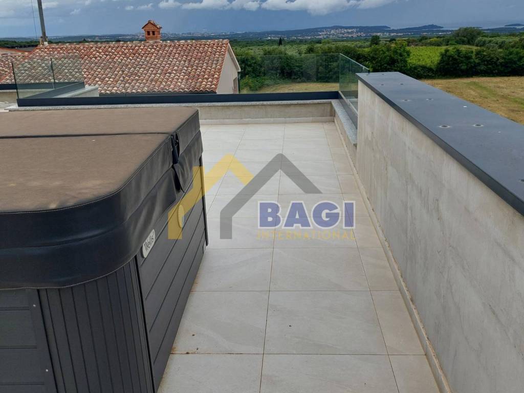 EXCLUSIVE-OPPORTUNITY-ALL NEW-Luxury duplex villas - two pools with a total net area of 501.22m2 on a plot of 515m2 with a panoramic view of the sea. The areas shown refer to two residential units, villa S1 and villa S2 Total net surfaces for both housing units, which are completely identical - mirror image GROUND FLOOR Entrance porch 4.52m2 Entrance area 11.76m2 Dining-Kitchen-Living Room 103.44m2 Bathroom 12m2 Bedroom 32m2 Covered terrace with installations for summer kitchen 34.84m2 Swimming pool-heated 48.24m2 FIRST FLOOR- Corridor and staircase 30.72m2 Hallway 15.08m2 Bedroom 21.70 m2 Wardrobe 7.96m2 Bathroom 15.40m2 Bedroom 32m2 Bedroom 42.06m2 Bathroom 10.92m2 Terrace 34.84m2 The staircase leads to the roof terrace of 112.5 m, which has a panoramic view of the sea and the Brijuni Islands. with summer kitchen and jacuzzi. The villas are built with high-quality materials - underfloor heating throughout the house - heat pumps. Top quality ceramic floors Air conditioning Thermal insulation 10 cm Aluminum carpentry with electric shutter lifters and mosquito nets High-quality sanitary equipment in all bathrooms Fully equipped with brand new furniture! In the final stage of moving in! We offer two identical duplex villas! Ownership clean and free of encumbrances! Available now! For all information, call +385 91 1509 059 (Viber / WhatsApp) or by email: aida.kudic@bagi-international.hr