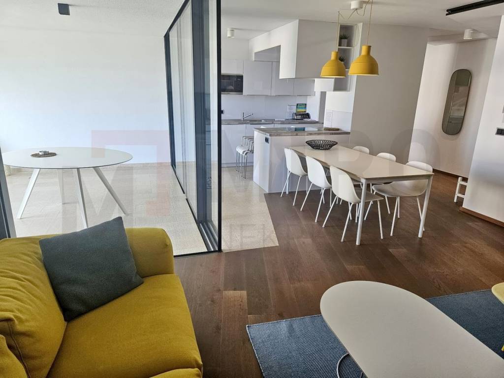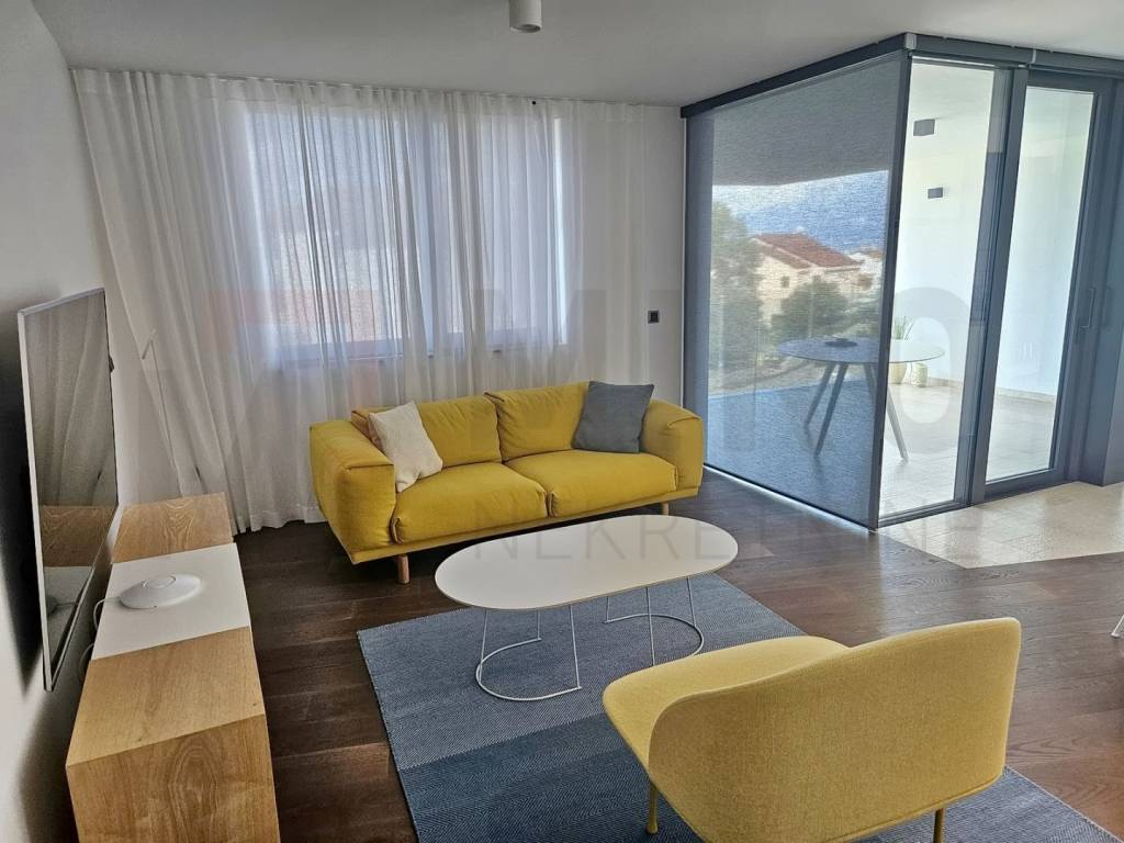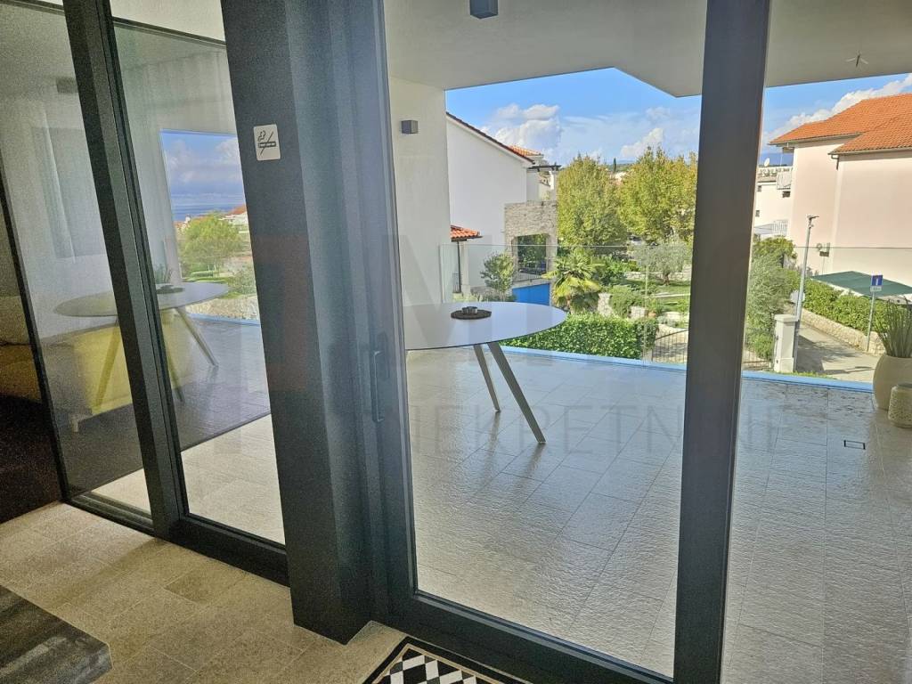 The island of Krk, Malinska, luxury apartment with a panoramic view of the sea, only 80m from the sea and well-kept beaches. Apartments with a total area of ​​91 m2 are located on the first floor of an urban, luxurious and modern villa. The apartment consists of a living room, a kitchen and a dining room that are united in an open space style, 3 bedrooms, a bathroom, a toilet. The living room with panoramic windows leads to a covered terrace with a beautiful open view of the sea. The charm and style of the building with five residential units is based on the simplicity of modern architecture and the combination of innovative technology. The choice of interior decoration played an important role in the creation of this property, so the investor chose high-quality parquet, ceramics and sanitary ware, heating with a heat pump of the German "VIESSMANN" system, underfloor heating,ALU carpentry with Schuco blinds, remote control of heating - cooling, appliances and electrical installations. , personal elevator, video surveillance, alarm, fire alarm. The property has one garage space and one space in the garden of the building. The apartment is owned by a natural person and the buyer is obliged to pay real estate sales tax in the amount of 3%. The real estate seller guarantees proper ownership documentation. Visit us and find the square footage of your home!
