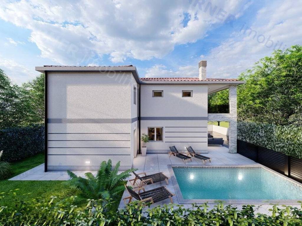 The house is located on a plot of 530 m² and is divided into ground floor and first floor. The house has a net living area of ​​app. 170 m². On the ground floor, there is a toilet, a bedroom with its own bathroom, and a large open space with a kitchen, dining area, and living room leading to the terrace and the garden where the pool of app. 21 m² and a barbecue are located. Internal stairs lead to the first floor where there are three more bedrooms and three bathrooms, as well as a terrace with a sea view. Top-quality materials were used in the construction and furnishing of the property, including attractive PVC windows with electric shutters, air conditioning, and water underfloor heating. There will be parking for 2 vehicles on the property. Completion of the building is planned for spring 2025. The house is located in an excellent location near the center of the town, approximately 600 m from the center and the sea!