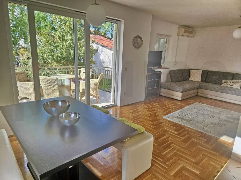 The island of Krk, Malinska offers a furnished apartment on the ground floor of a multi-storey residential building with a total living area of 69 m2, 400 m from the sea. It consists of an entrance hall, 2 bedrooms, a bathroom, a kitchen with a dining area and a living room with access to a covered balcony and a storage room of 7 m2. The apartment is sold fully furnished, air-conditioned, has PVC joinery, proper documentation and is immediately ready to move in. Parking is located in the building's yard. It is located in a prime location near the beach and the center itself. It is a great opportunity for personal use or for tourist rental. The apartment is owned by a natural person and upon its transfer, the buyer is obliged to pay 3% real estate transfer tax. Visit us and find the square footage of your home!