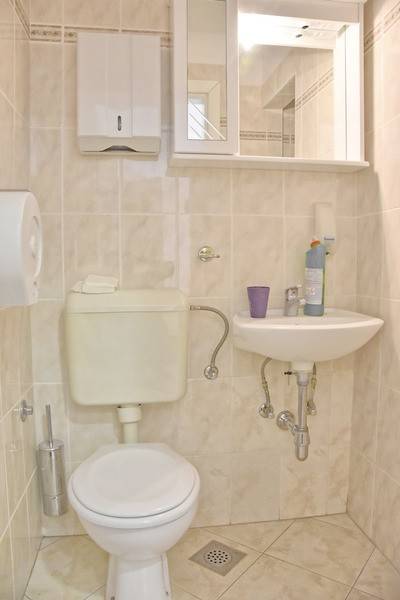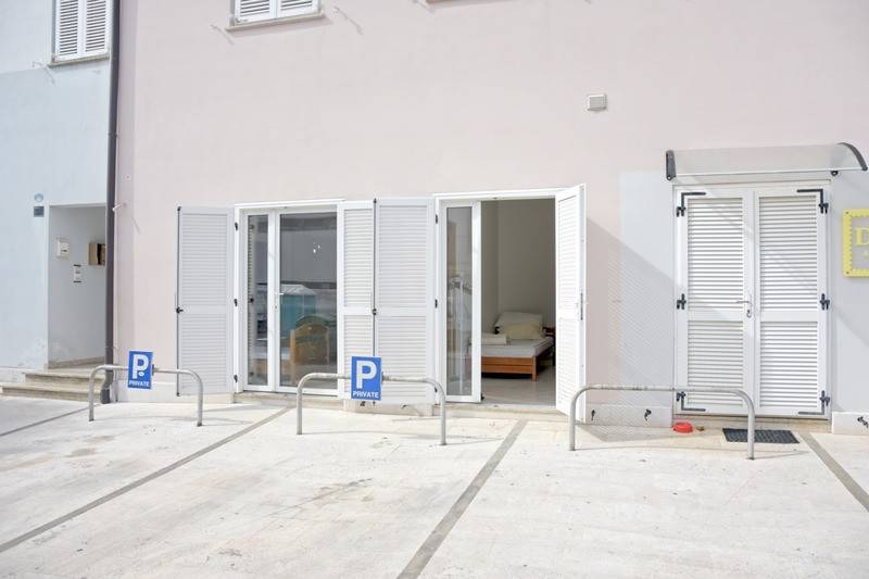 Nalazi se u prizemlju stambeno-poslovne zgrade u mirnom naselju Špadići, svega 200 metara od mora.