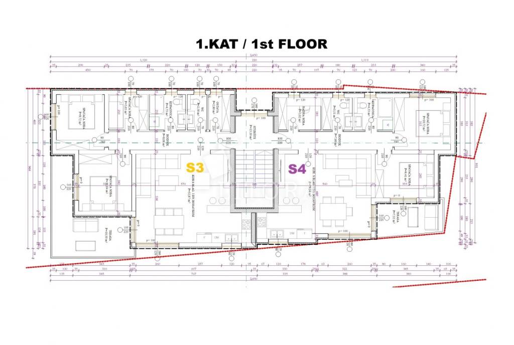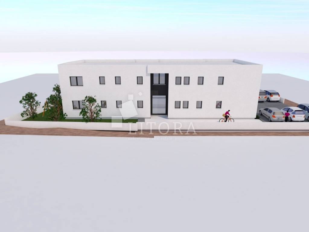 Vodice – New build, two-bedroom apartment 74,05m² with big terrace. Apartment S4, located on the 1st floor of a modern residential building with a total of four units. The apartment is east-oriented, with a total usable area of 74,05 m², and consists of: hallway, WC, bathroom, office room, two bedrooms, and a spacious living room with kitchen and dining area, with access to the covered terrace of 7,32m². One outdoor parking space is included. Distances: beach 1,500 m, town centre 1,300 m. Planned move-in date: Summer 2026. Apartment equipment: Air conditioning for heating and cooling in every room, 10 cm styrofoam façade, ceramic tiles throughout the apartment, aluminium shutters with electric lifts and insect screens, electric underfloor heating in the living room and bathroom.