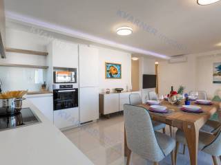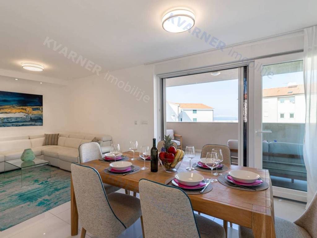 For sale is a spacious and fully furnished apartment of 120 m², located in one of the most sought-after areas of Malinska on the island of Krk. The property is situated in a quiet setting, just a short walk from the sea and promenade, offering an open sea view from a large terrace.