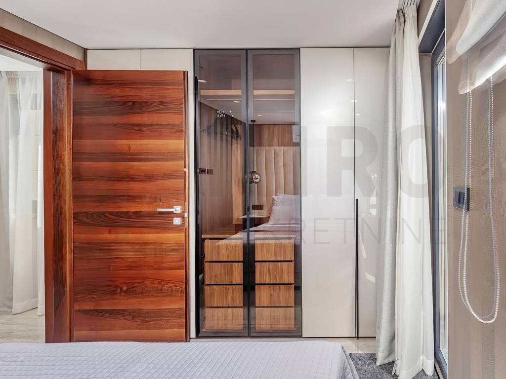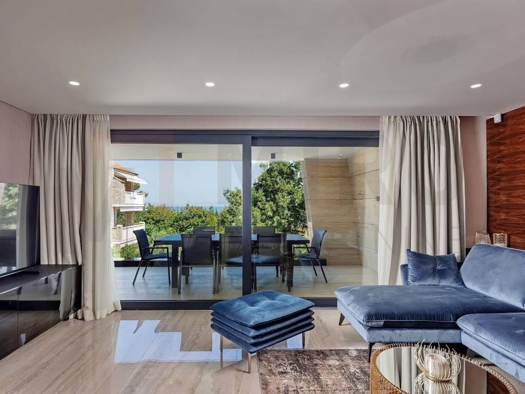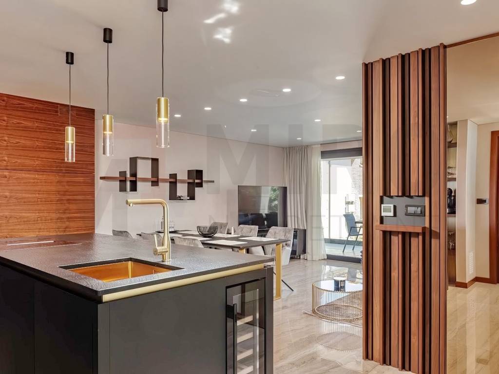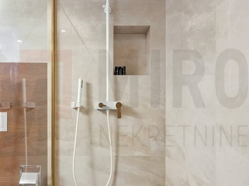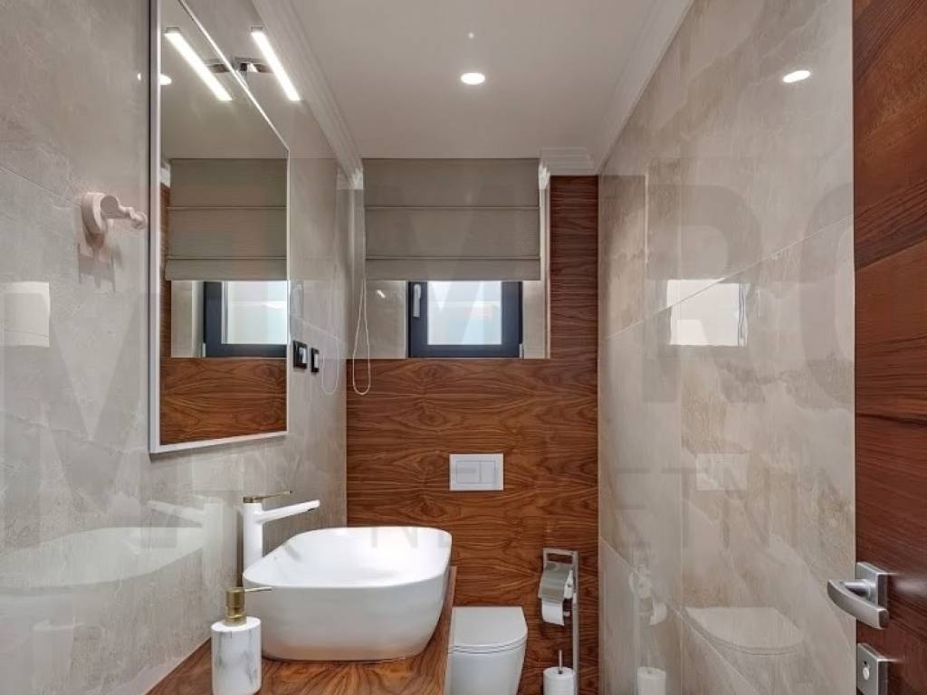 The island of Krk, Malinska, the agency offers a luxury apartment in an exceptional location, in the very center of Malinska and within walking distance of the sea and all local amenities. The spacious one-story apartment is located on the 1st floor. The total area of the apartment is approximately 113 m2. It consists of a kitchen with a dining room and a living room, 3 bedrooms, 2 bathrooms, a toilet and a covered terrace with a view of the sea. First-class construction and equipment from top manufacturers including: Mitsubishi air conditioning, underfloor heating, lift-and-slide carpentry, porcelain ceramics, Diere burglar-proof doors, room doors made of walnut wood and external facade made of Roman Travertine stone. The ownership of the described property also includes a garden with a swimming pool and a landscaped area for relaxation with a summer kitchen. The owner of the apartment will have one parking space at his disposal. This apartment is included in the VAT system and is not subject to the obligation to pay real estate tax when transferring ownership. The real estate seller guarantees proper construction and ownership documentation. Visit us and find the square footage of your home!