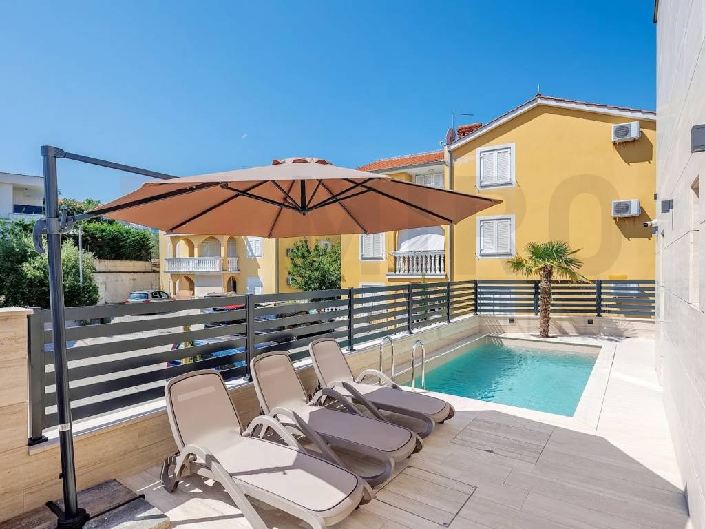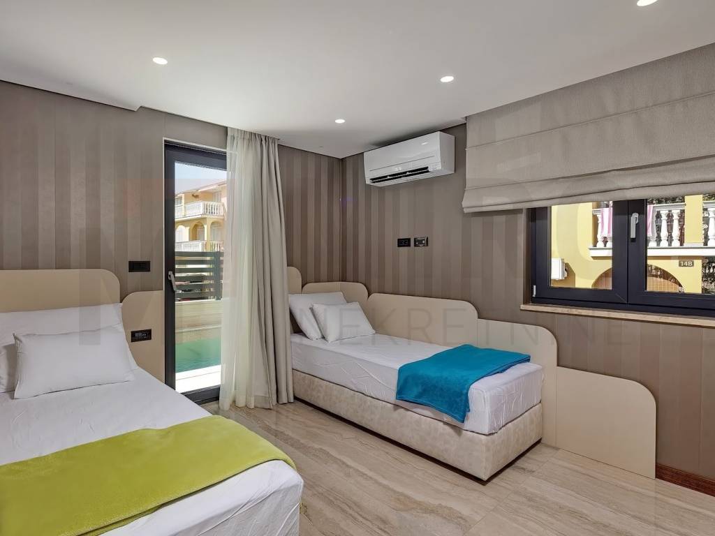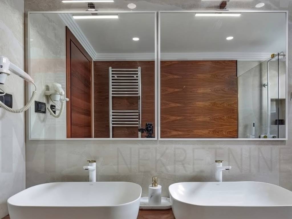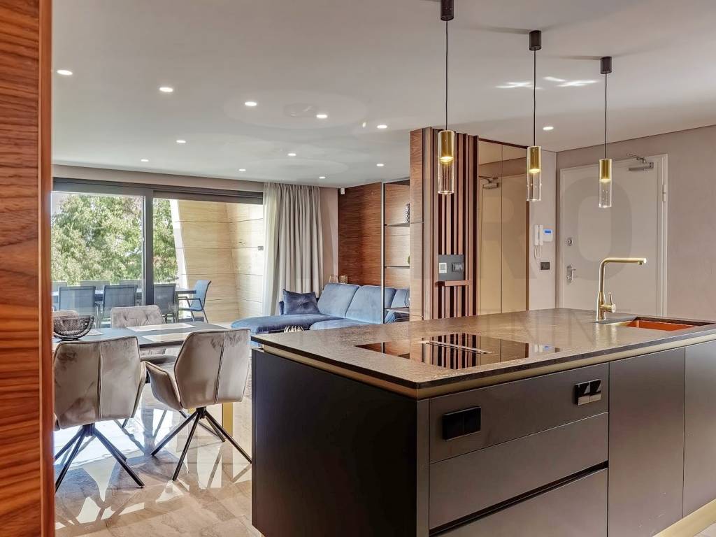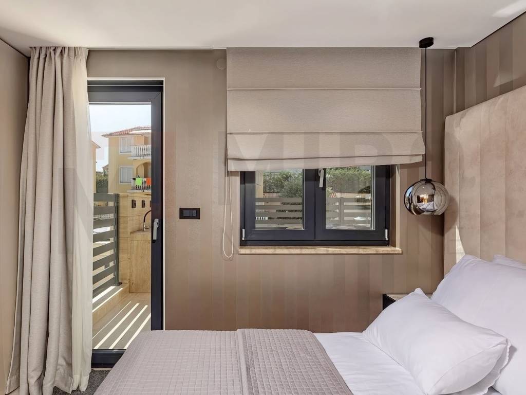 The island of Krk, Malinska, the agency offers a luxury apartment in an exceptional location, in the very center of Malinska and within walking distance of the sea and all local amenities. The spacious one-story apartment is located on the 1st floor. The total area of the apartment is approximately 113 m2. It consists of a kitchen with a dining room and a living room, 3 bedrooms, 2 bathrooms, a toilet and a covered terrace with a view of the sea. First-class construction and equipment from top manufacturers including: Mitsubishi air conditioning, underfloor heating, lift-and-slide carpentry, porcelain ceramics, Diere burglar-proof doors, room doors made of walnut wood and external facade made of Roman Travertine stone. The ownership of the described property also includes a garden with a swimming pool and a landscaped area for relaxation with a summer kitchen. The owner of the apartment will have one parking space at his disposal. This apartment is included in the VAT system and is not subject to the obligation to pay real estate tax when transferring ownership. The real estate seller guarantees proper construction and ownership documentation. Visit us and find the square footage of your home!
