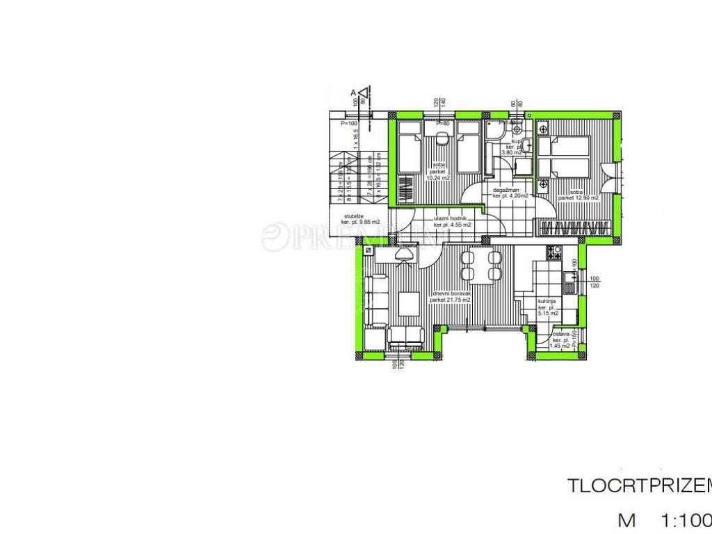vMalinska, for sale, a two-story apartment in a new building, situated in a peaceful location! The apartment spans two levels: the ground floor and the first floor, with a total area of 144m2. By design, these floors represent two separate apartments with identical room layouts. Each level comprises an entrance hall, spacious living room, kitchen and dining area, pantry, bathroom, and 2 bedrooms. The ground floor has access to the garden.