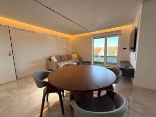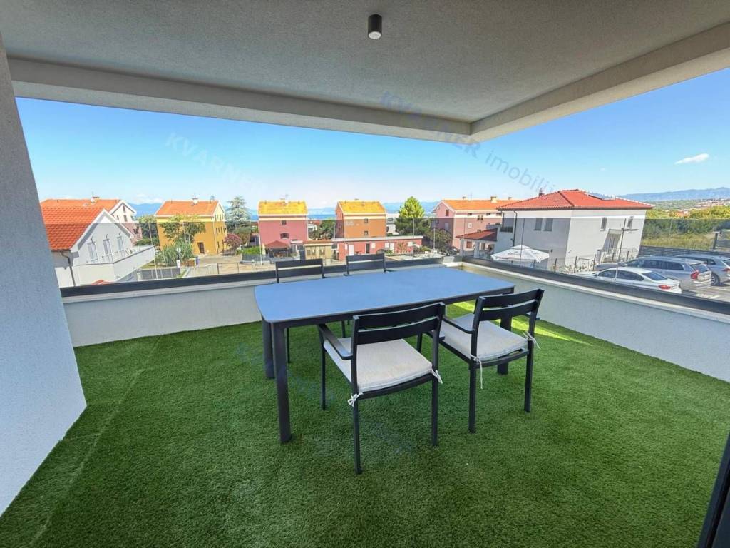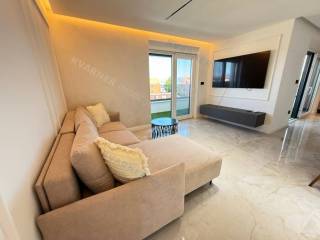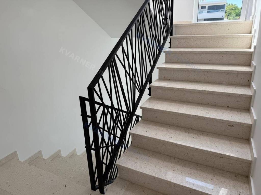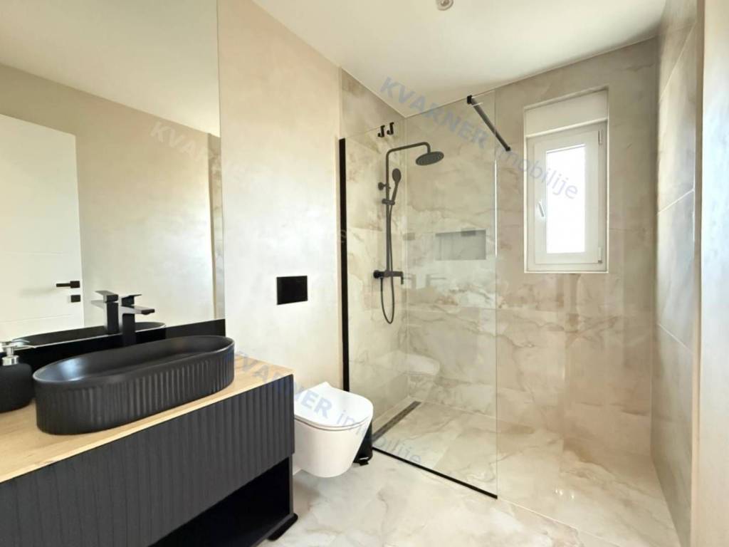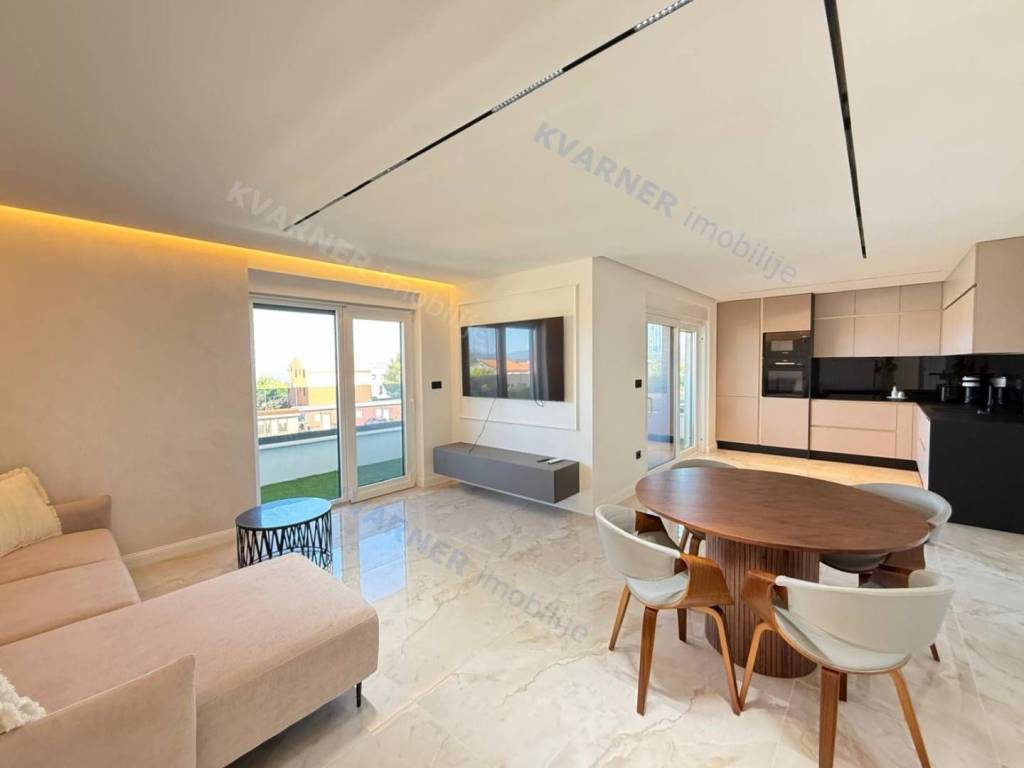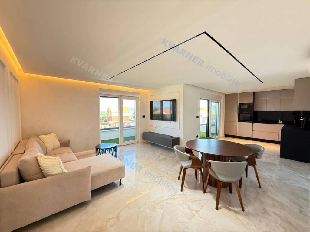 A luxury apartment is for sale in Malinska, located in a quiet area just 800 meters from the sea. This beautiful first-floor apartment consists of an entrance hall, a spacious kitchen with a dining area, and a living room that opens onto a covered terrace with a lovely sea view. The apartment has two comfortable bedrooms and two bathrooms, making it suitable for family living or vacation. The property is sold fully furnished and equipped with high-quality custom-made furniture, offering an elegant and functional space. The apartment features underfloor heating, air conditioning in every room, and quality ceramic floors, ensuring comfortable living all year round. The property also includes a parking space within the building’s courtyard. The apartment is in the VAT system, which means the buyer does not pay real estate transfer tax.