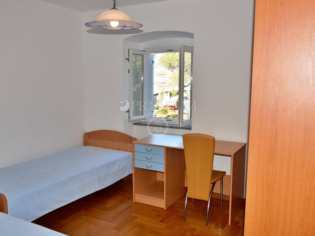 Malinska, for sale, first floor apartment of 113 m2, consisting of four bedrooms, two bathrooms, spacious living room with kitchen and dining area, and two terraces with open sea views.