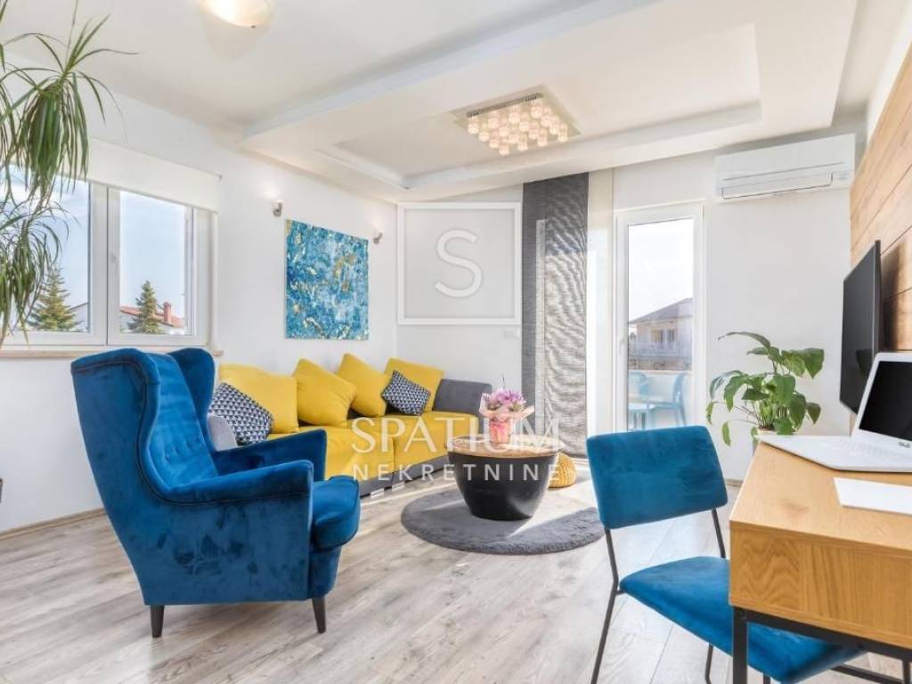 FAŽANA, VALBADAN, we have a beautifully decorated duplex apartment of 87 m2 on offer. It consists of a living room, kitchen with dining room, two bedrooms, bathroom and two terraces on both floors. There is a storage room and a private parking space. The property is fully furnished and equipped with air conditioning for heating and cooling. It is south-facing and renovated in 2022. This is an ideal property for family life, and is currently used as a tourist rental, and is well-established, offering the future owner the opportunity to continue the business and earn additional income.