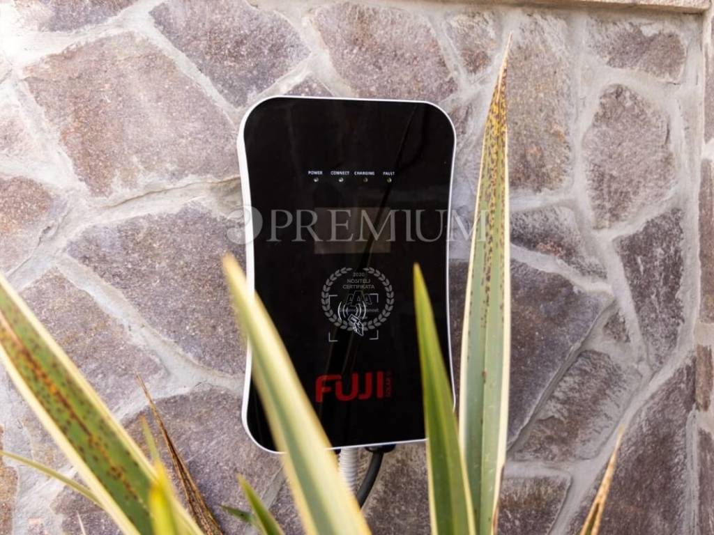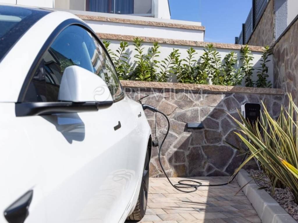 The garden, about 70 m² in size, is designed for minimal maintenance and is equipped with an automatic irrigation system for the plants. The property also includes two parking spaces and a charging station for electric vehicles.