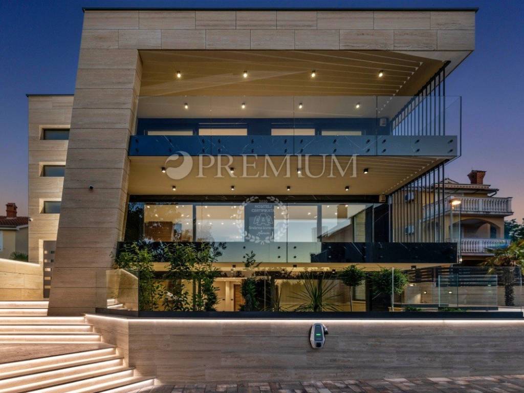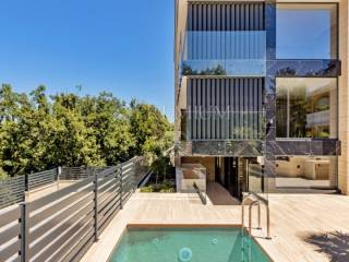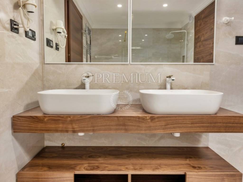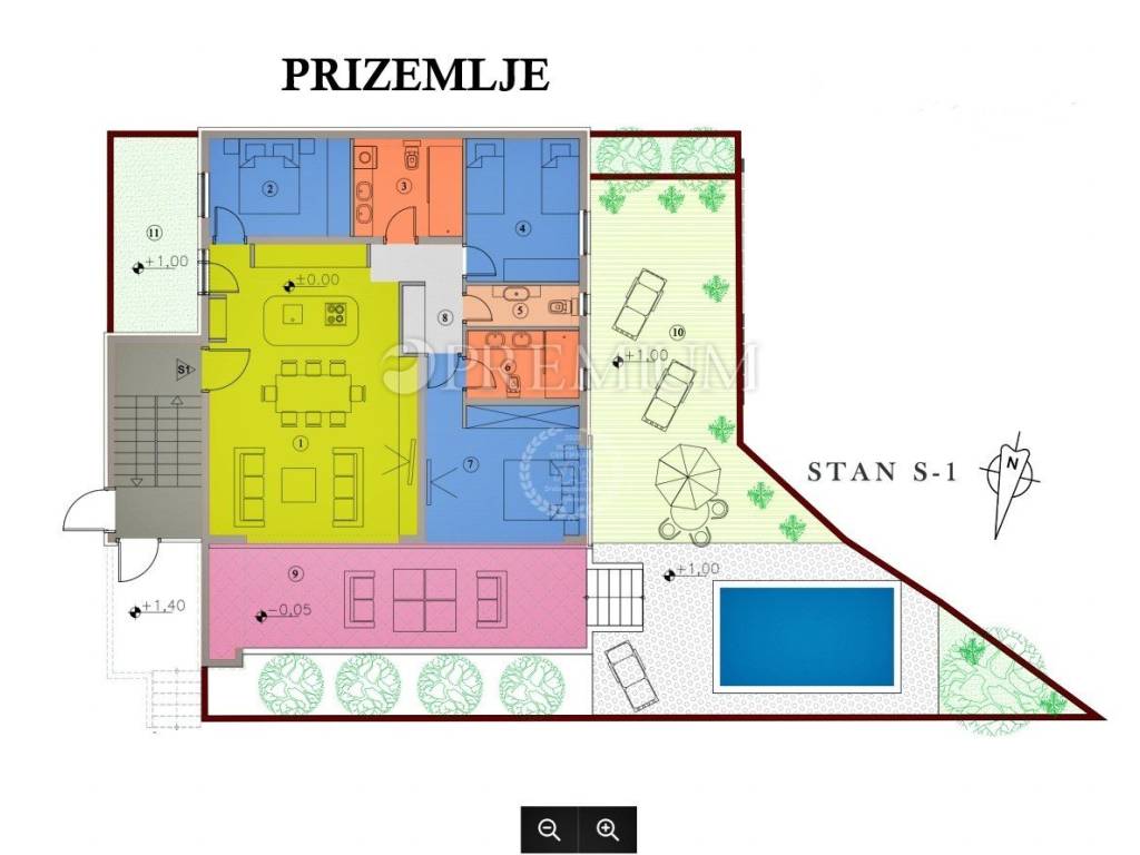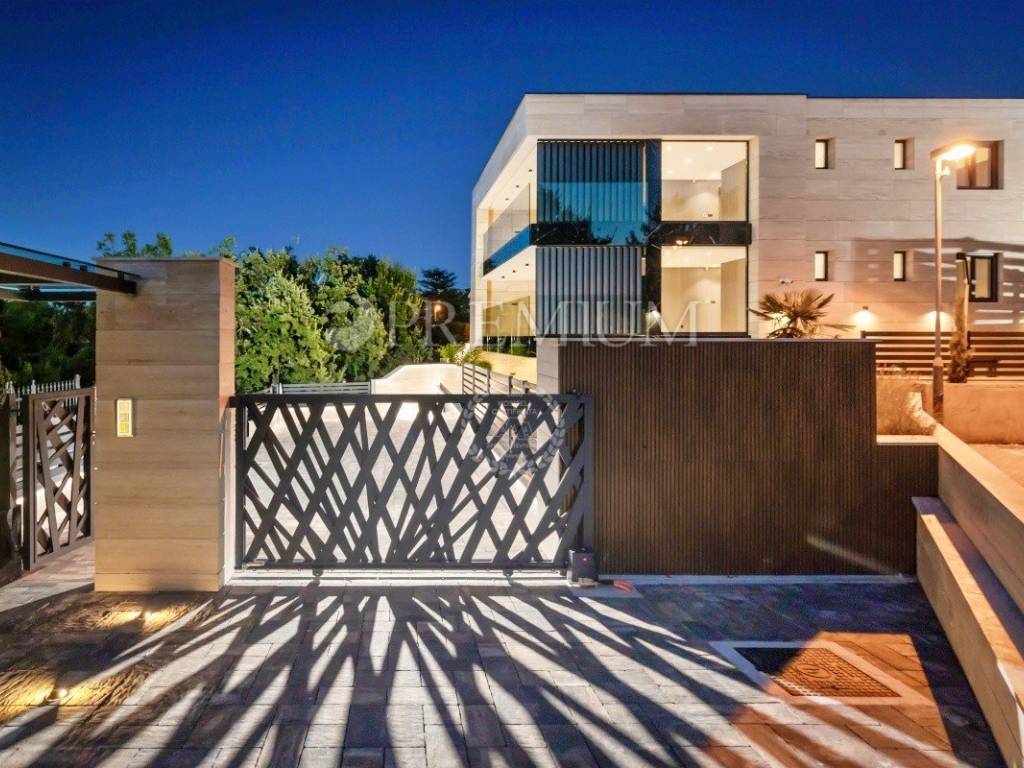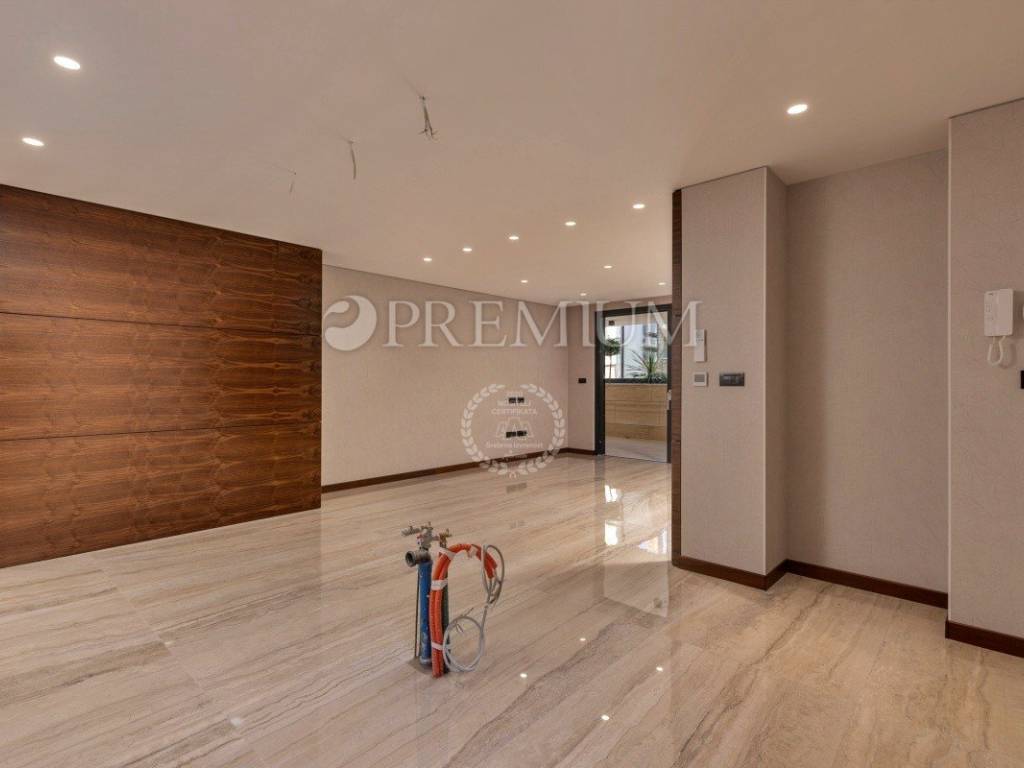 Modern ground floor apartment in a luxury new building in Malinska, in a prime location only 300 meters from the beach. Apartment size: 114 m² (net), garden 102 m² with a 15 m² pool and sun deck, covered terrace 27 m², three bedrooms (master bedroom with en-suite bathroom), two modern bathrooms + guest toilet, one parking space.