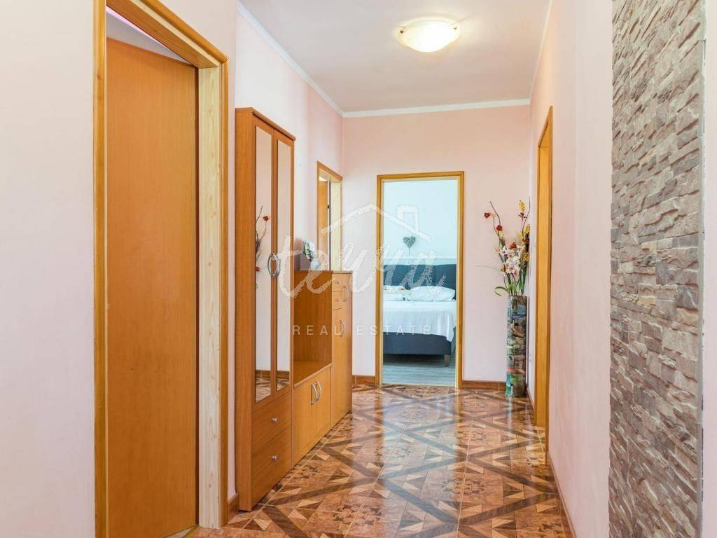 The first apartment, which is also larger, consists of a kitchen with a dining room, a living room, three bedrooms and two bathrooms.
