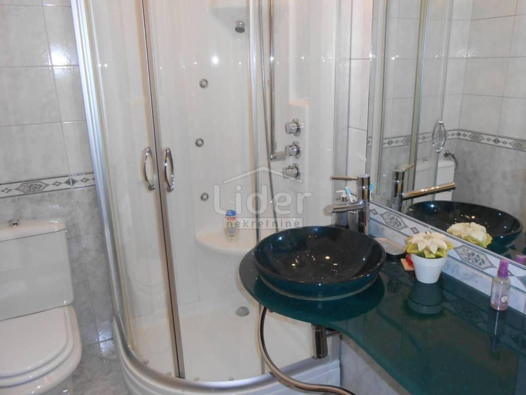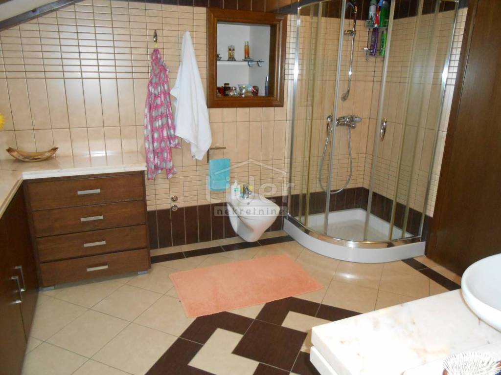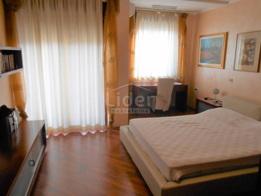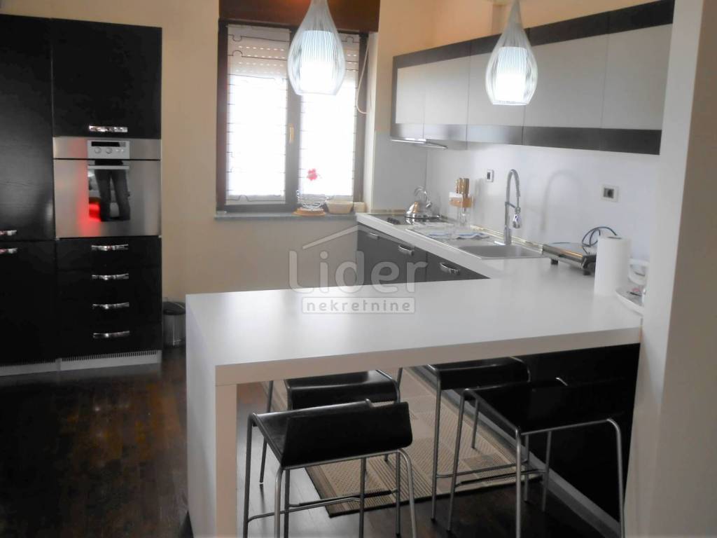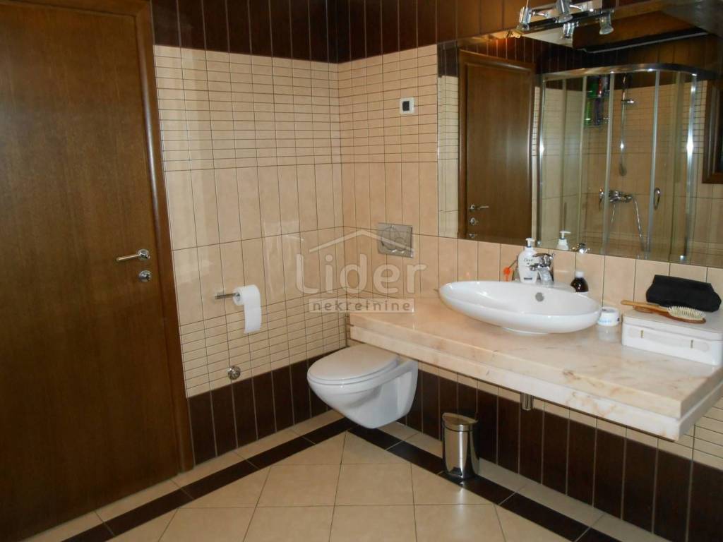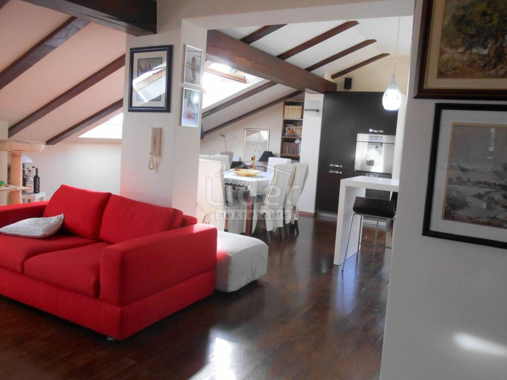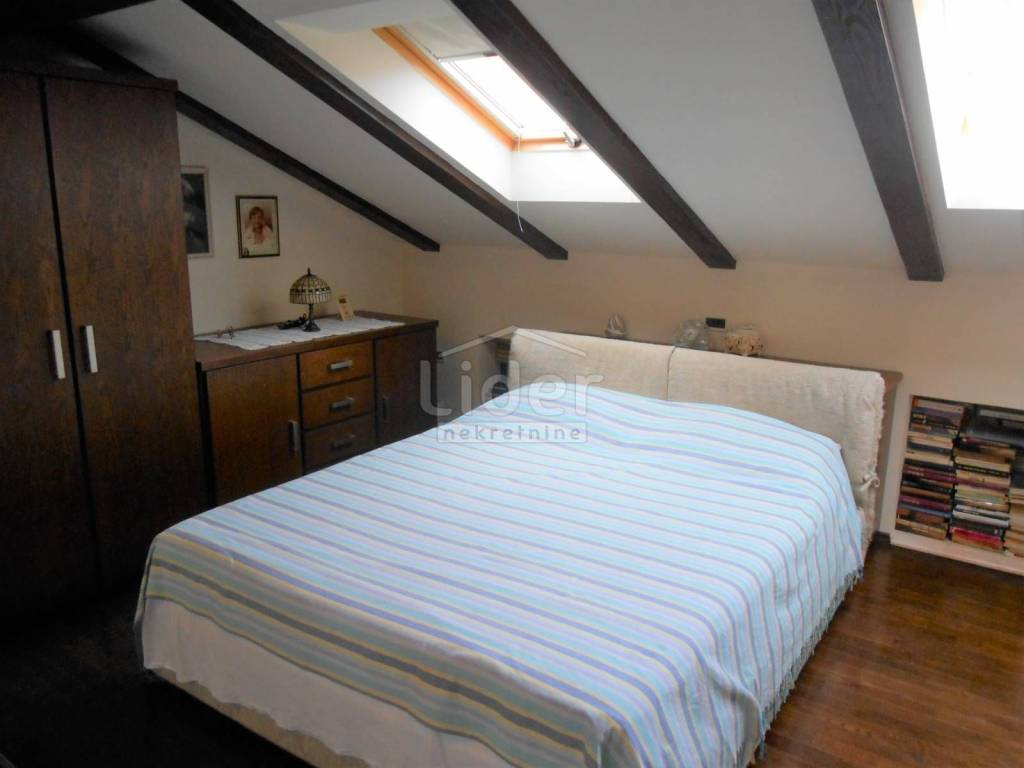 KOZALA Luxurious two-storey apartment in a unique location, just 2 km from the city center and close to a large park, with unobstructed sea views in a regularly maintained residential building of high construction quality. The apartment has a total of 121 m2 of living space spread over two exclusively furnished floors. On the first floor of 38 m2 there is currently a spacious bedroom with access to the loggia, a closet of 10 m2 and a bathroom with a hydromassage shower cabin. According to the project, this floor was built as a studio apartment, so the installations for the kitchen have already been carried out, but are currently not in operation. A beautiful, specially designed staircase made of a combination of solid wood and chrome fittings leads to the second floor of 83 m2, where there is an open, bright space with a spacious living room, dining room and kitchen, a bedroom and a large bathroom. This luxuriously furnished apartment is being sold fully furnished and equipped to a high standard. Almost all the furniture is made to measure from solid wood. Excellent thermal insulation and quality of skylights installed. The apartment also has a woodshed and two parking spaces. Extremely quiet environment. Ready to move into immediately.