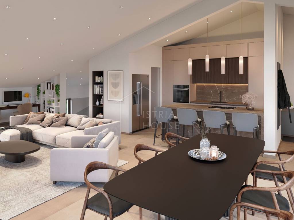 This modern two-story apartment, with an area of 173 m2, represents an ideal combination of luxury, functionality and a wonderful view of the sea. Located in a quiet part of the city, away from the hustle and bustle of the city, it offers a unique combination of privacy and proximity to all important amenities.