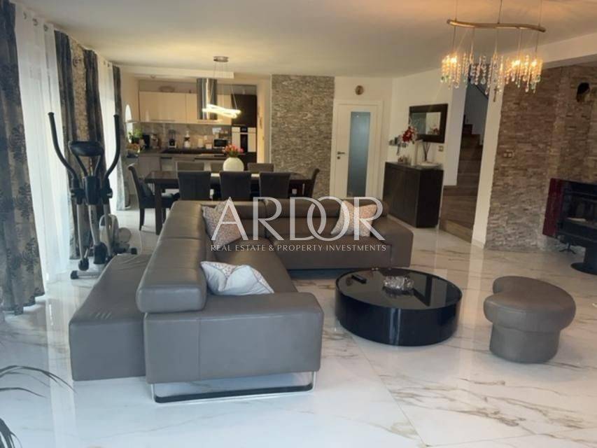 A beautiful semi-detached villa for sale in Pobri with a gross area of ​​697.37 m2, close to the green belt and sports recreation area, and only 2.5 km from Opatija.