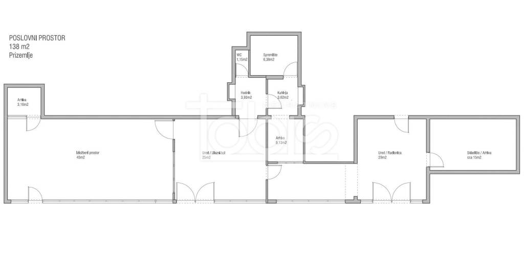 * UREDSKI PROSTORI cca 138m2 - 9 EUR/m2 *