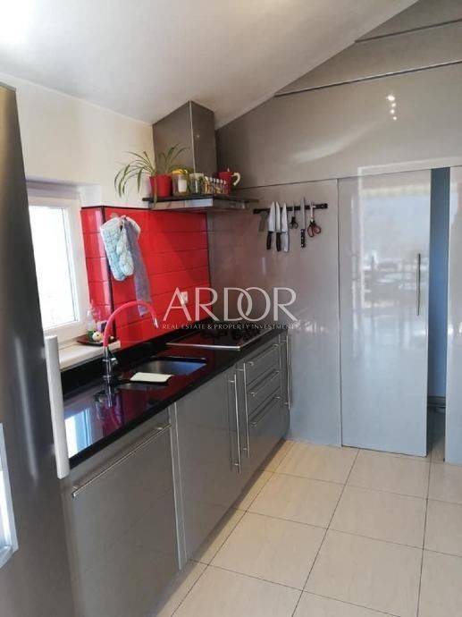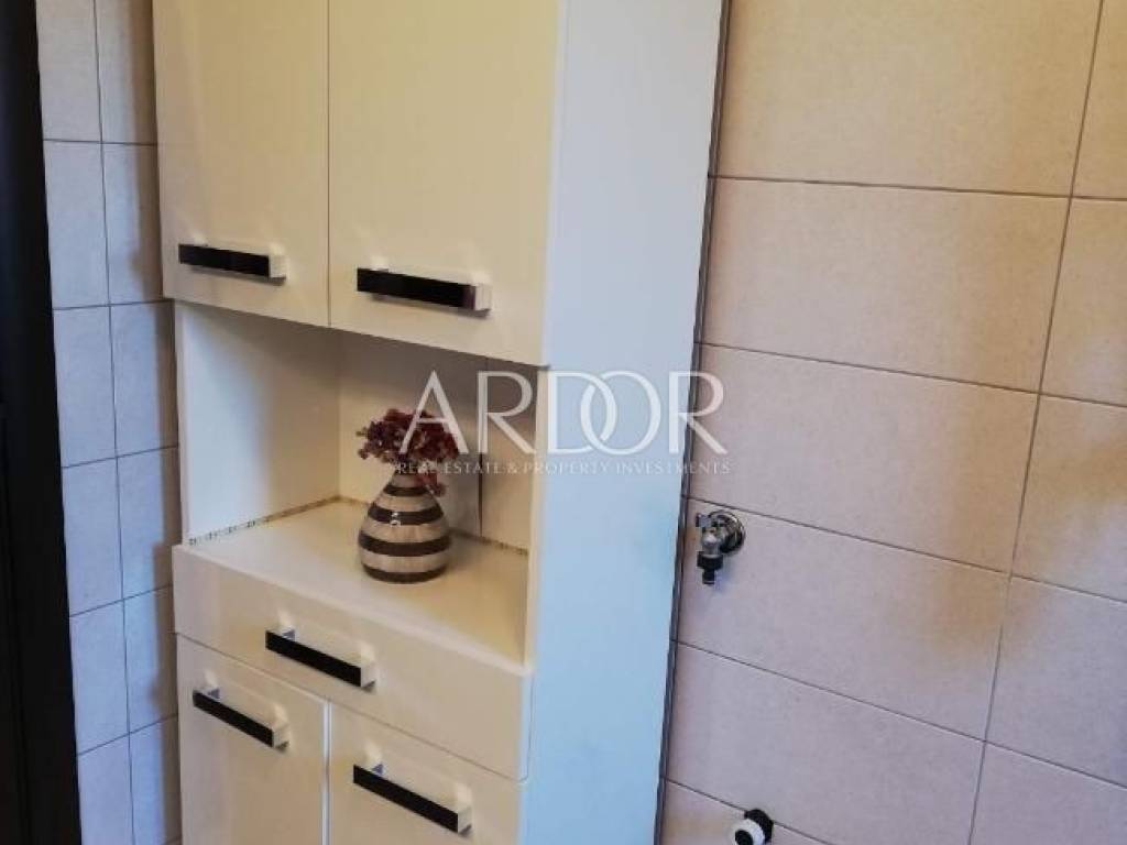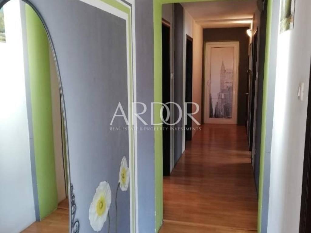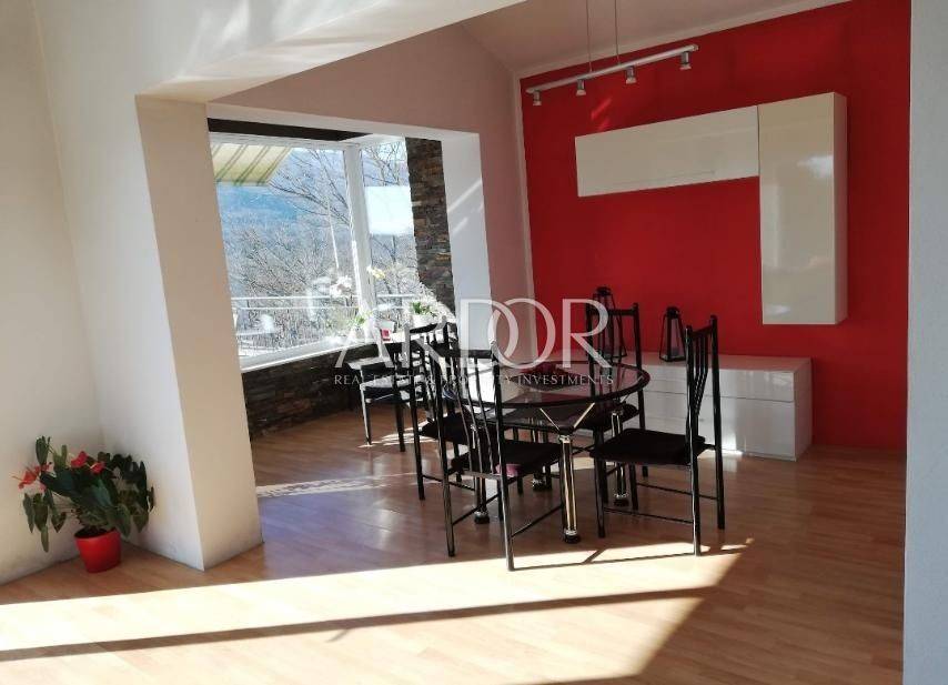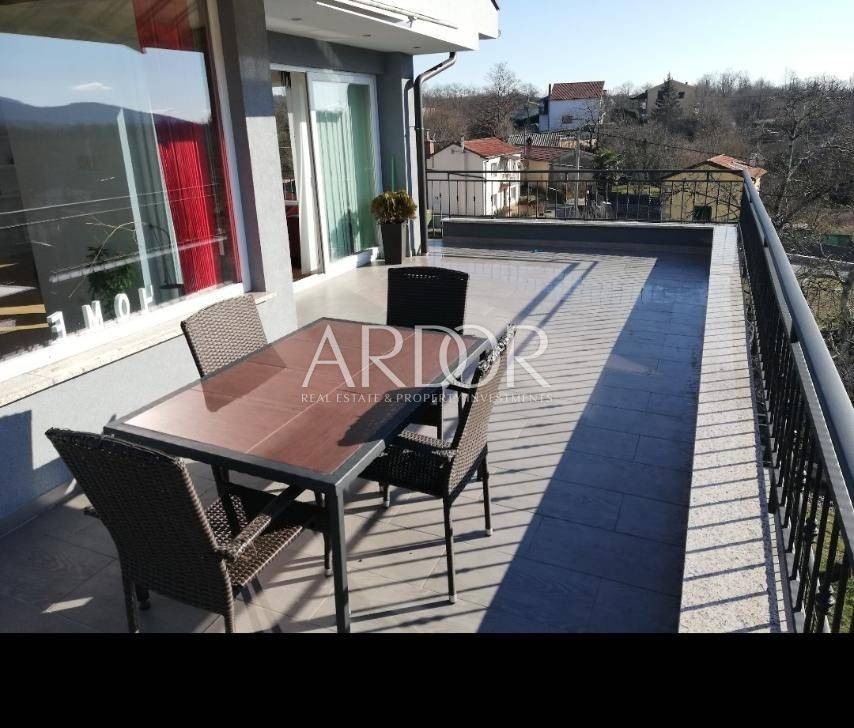In the peaceful settlement of Brešca, within the municipality of Matulji, a well-maintained apartment of 137 m² is for sale on the second floor of a two-story building. The apartment consists of an entrance area, bathroom, three bedrooms, kitchen with dining area, and a living room with access to a 22 m² balcony. Every room features large windows, ensuring plenty of sunlight and good ventilation. The apartment is equipped with central heating, air conditioning, high-quality Modern-line PVC windows, and top-quality ceramics.