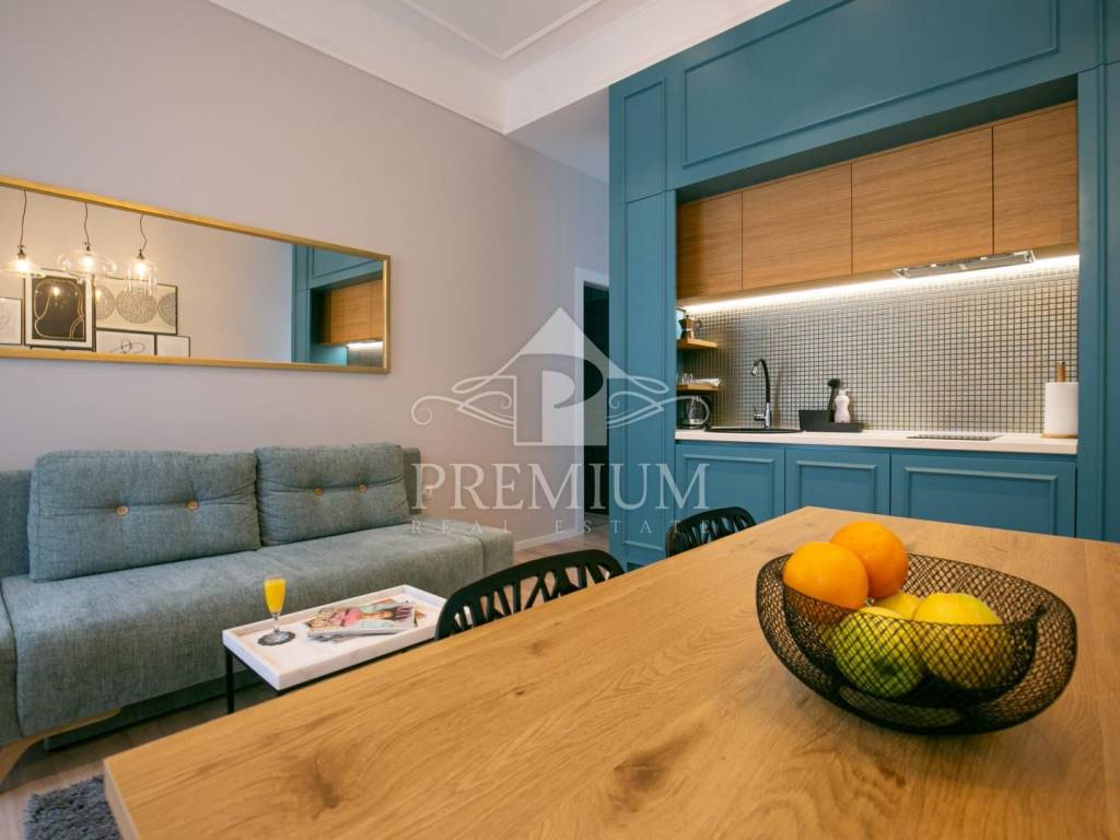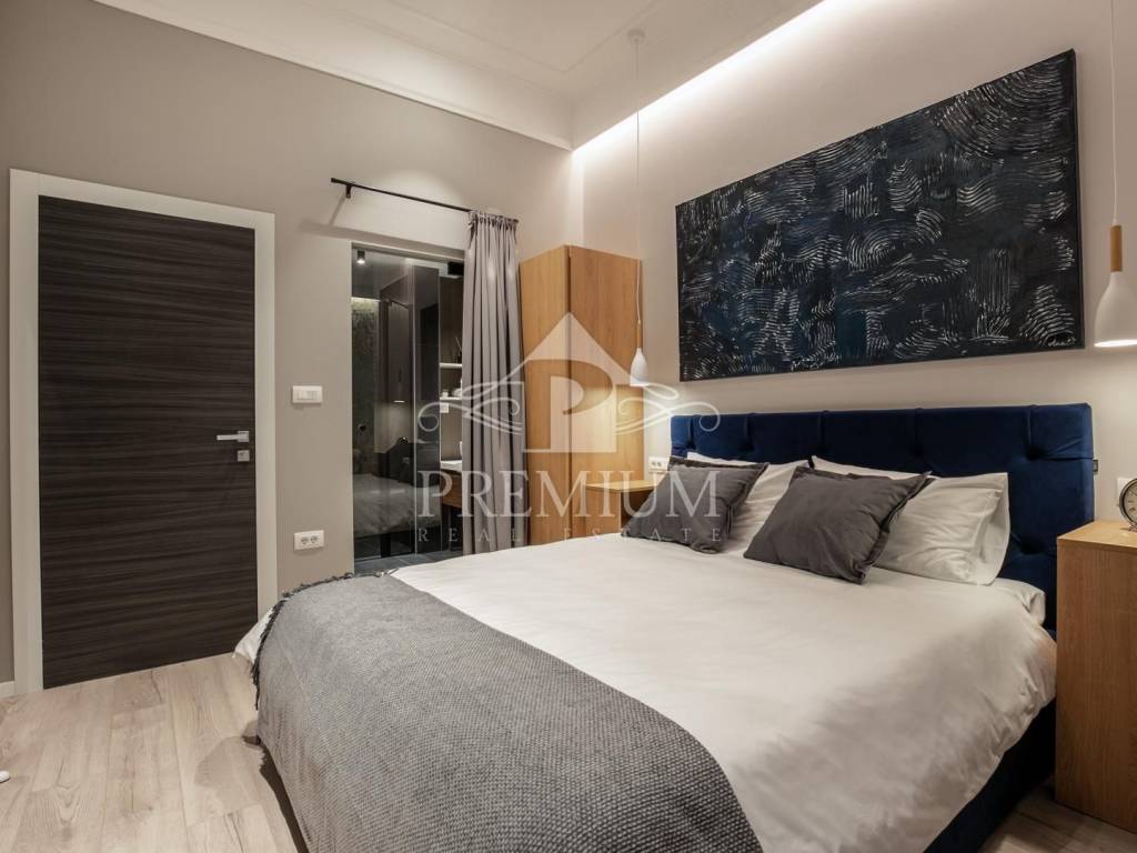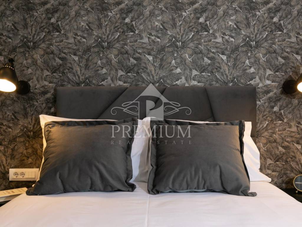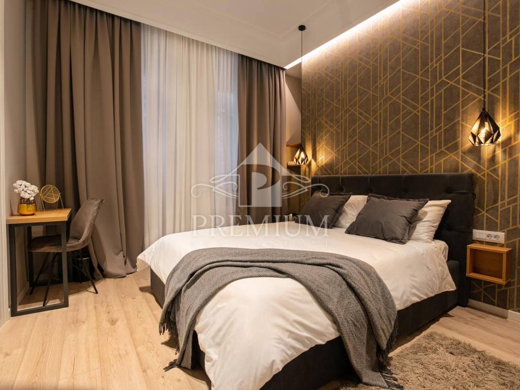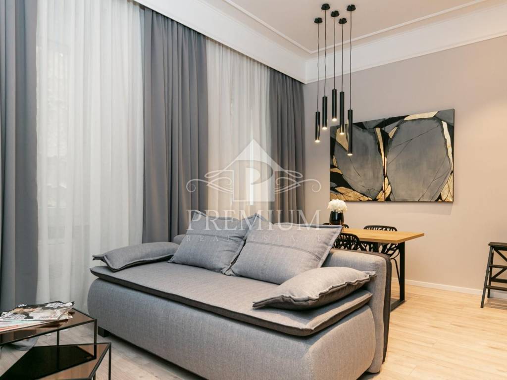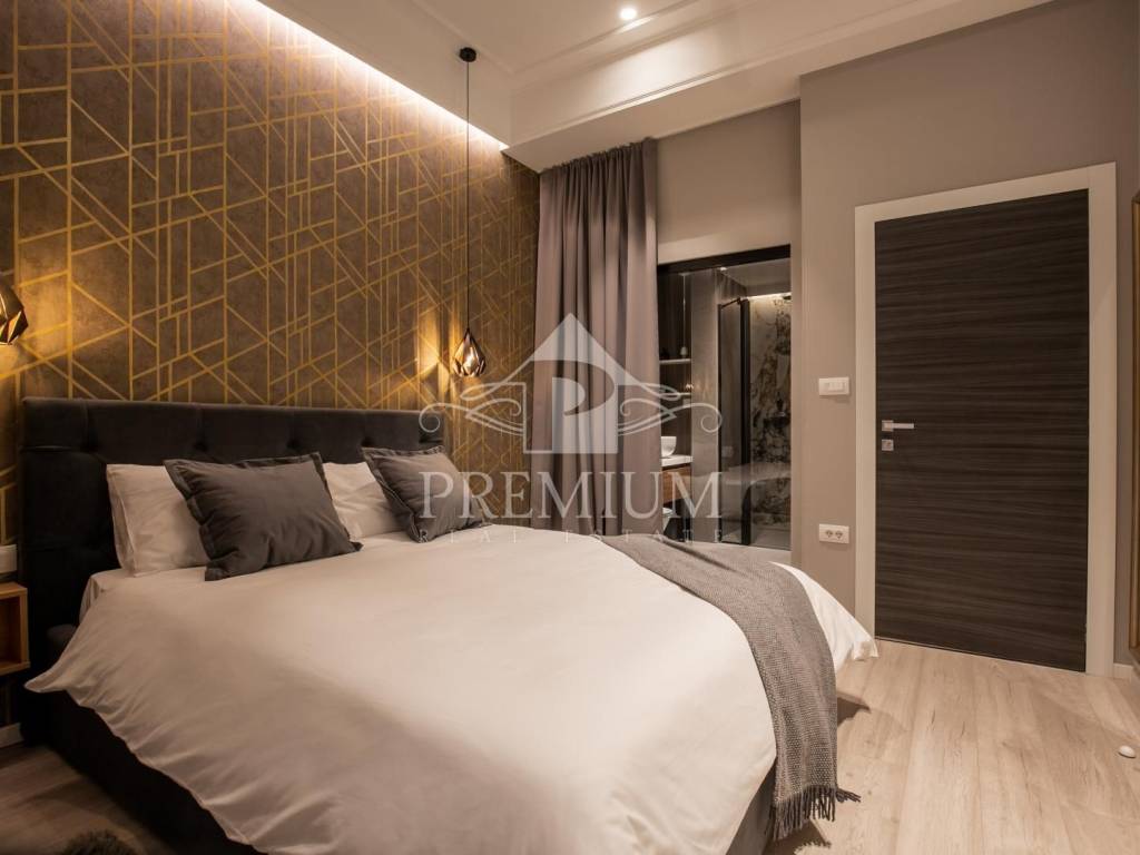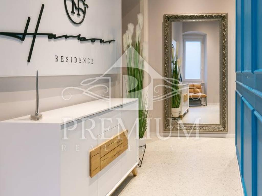 In an attractive location in the very center of the city, on the 2nd floor, we offer luxuriously equipped accommodation, consisting of 2 comfortable apartments and 3 rooms, with a total area of 150.66 m2. The luxurious design imbued with gray tones and gold details, as well as carefully selected details impeccably emphasized the glamor of the space, and thus gave great comfort to the entire space. The apartments are designed with handmade designer pieces of furniture. Sophisticated style, play of colors and sumptuous materials make this accommodation a real gem. The rooms have their own bathroom. This spacious apartment, divided into accommodation units, is currently used for commercial purposes, i.e. tourist rental, and has a 4-star rating.