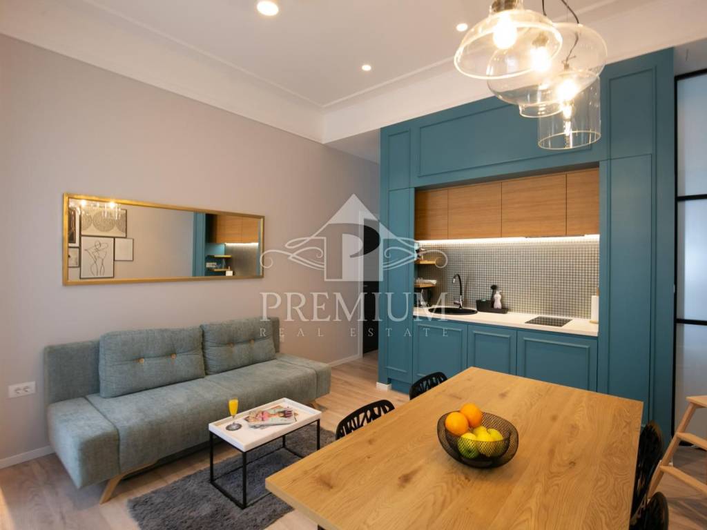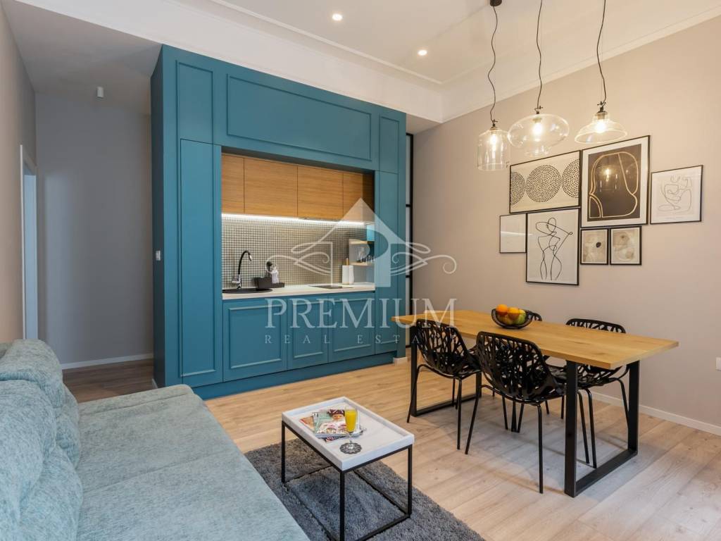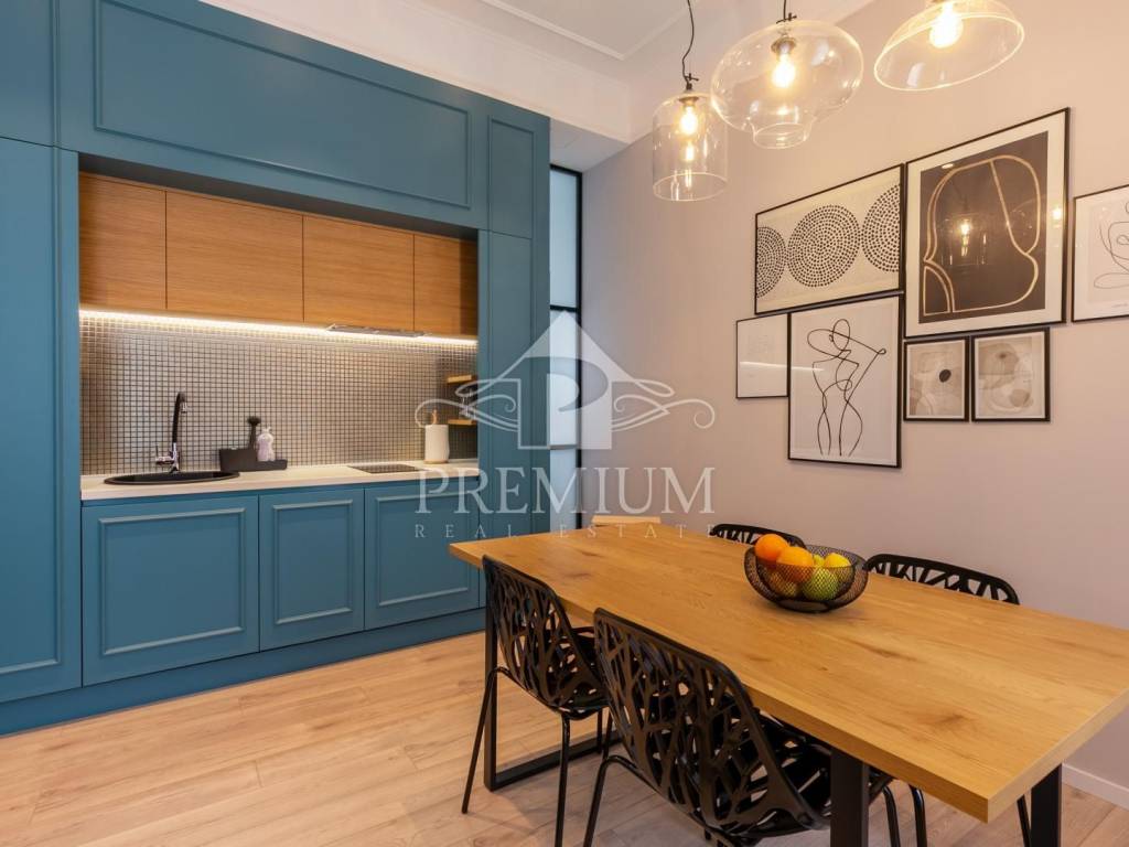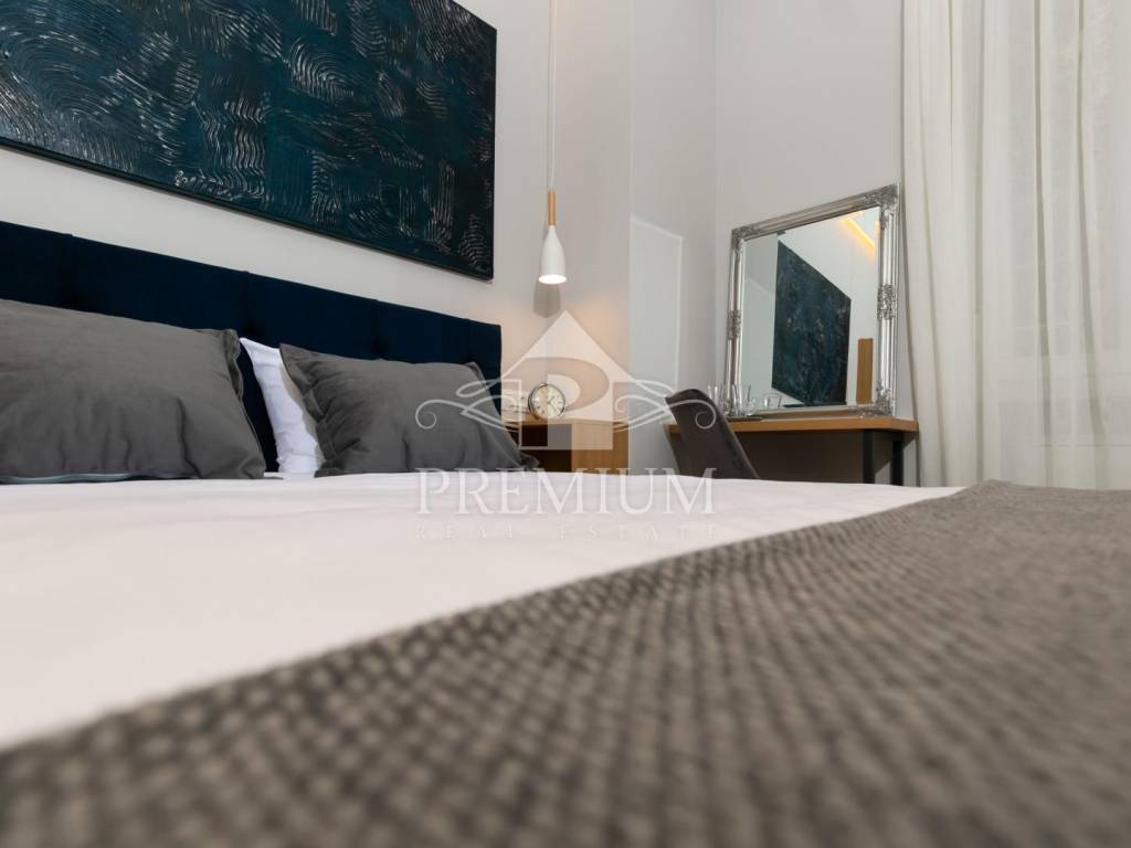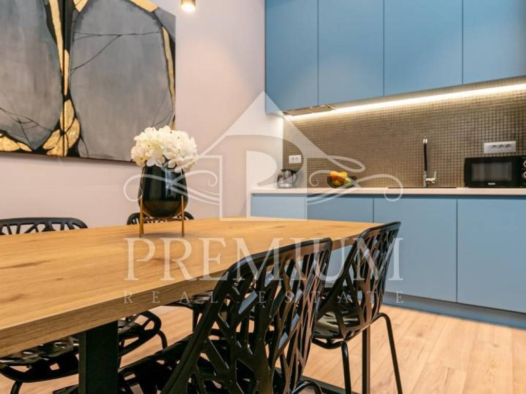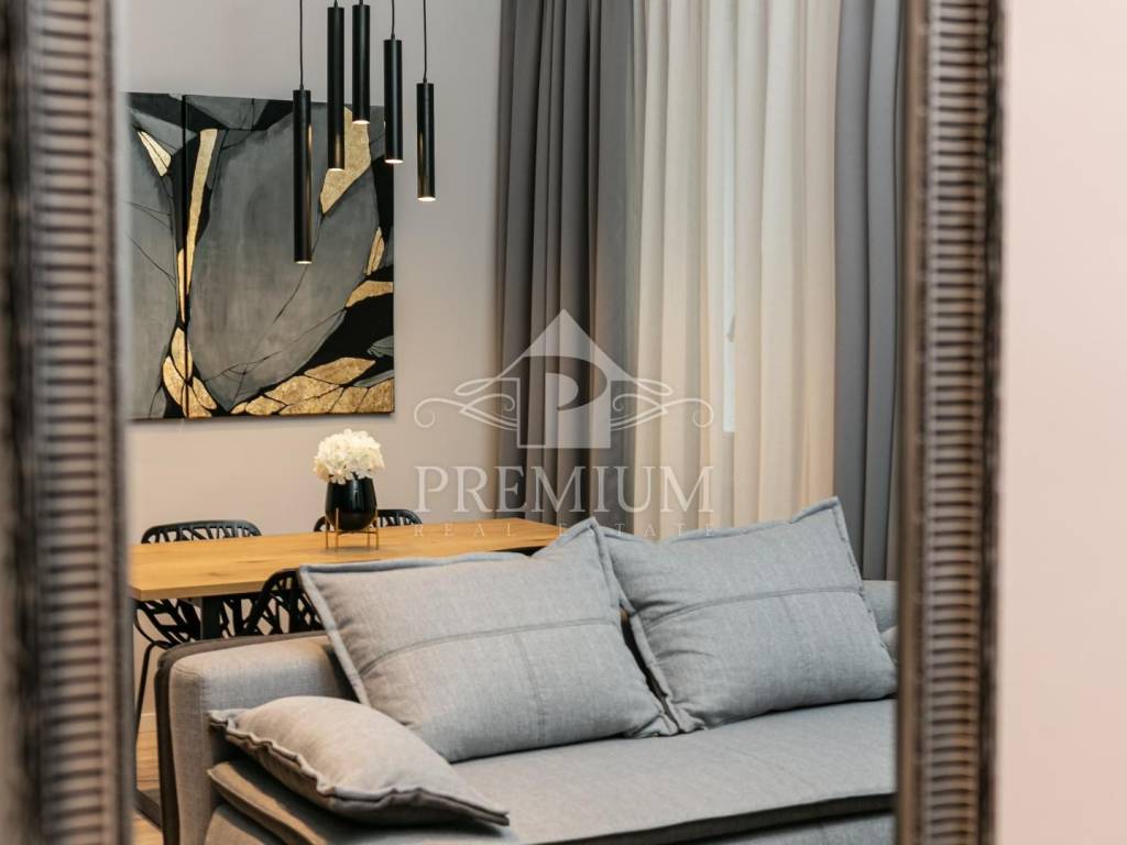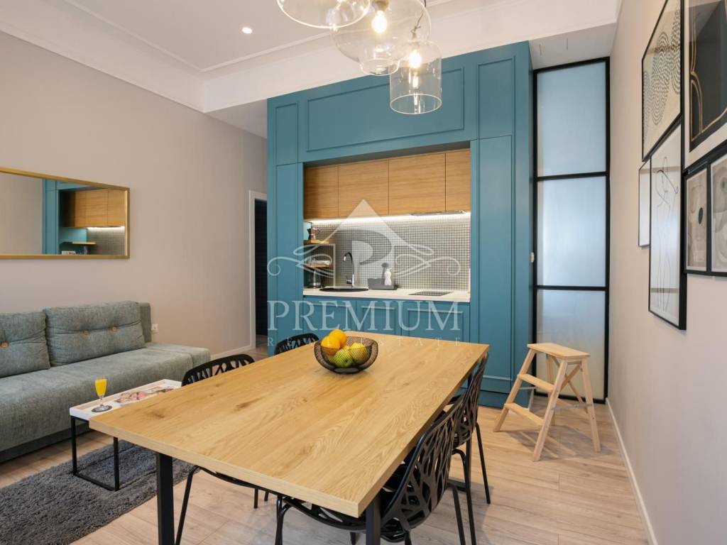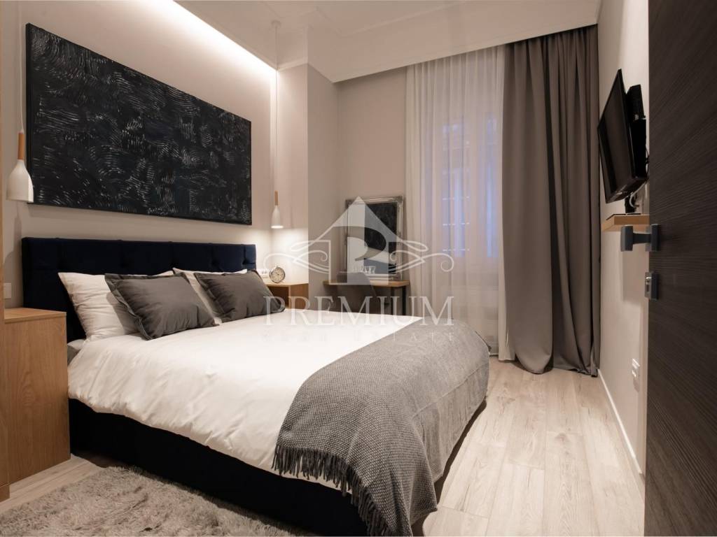 In an attractive location in the very center of the city, on the 2nd floor, we offer luxuriously equipped accommodation, consisting of 2 comfortable apartments and 3 rooms, with a total area of 150.66 m2. The luxurious design imbued with gray tones and gold details, as well as carefully selected details impeccably emphasized the glamor of the space, and thus gave great comfort to the entire space. The apartments are designed with handmade designer pieces of furniture. Sophisticated style, play of colors and sumptuous materials make this accommodation a real gem. The rooms have their own bathroom. This spacious apartment, divided into accommodation units, is currently used for commercial purposes, i.e. tourist rental, and has a 4-star rating.