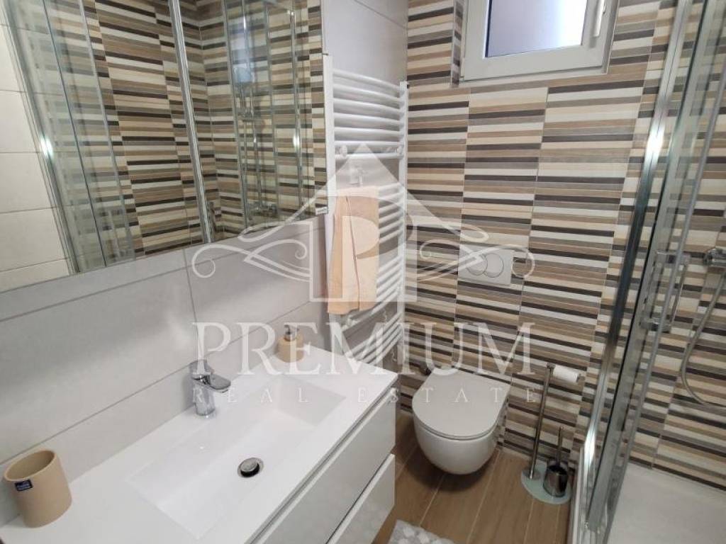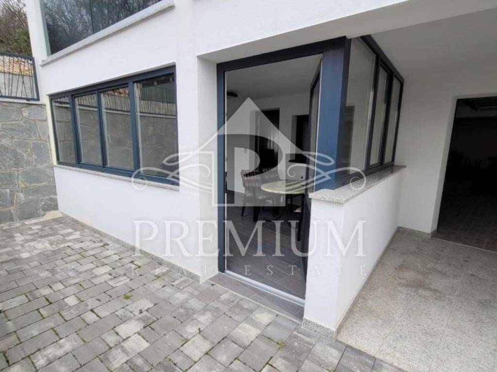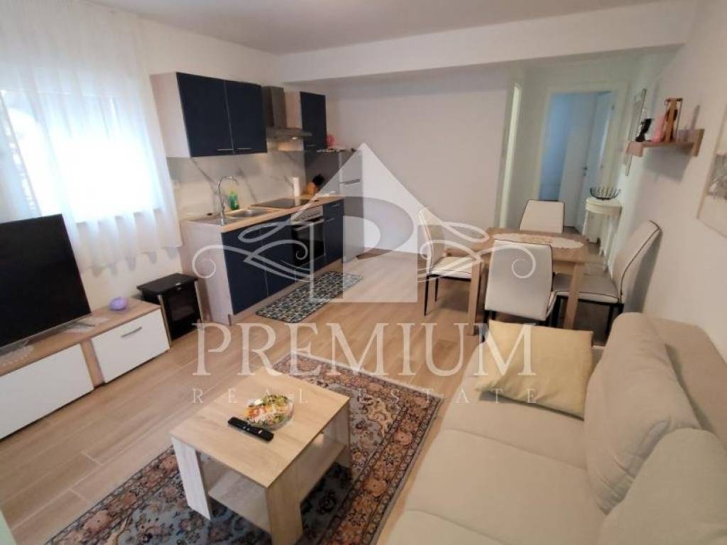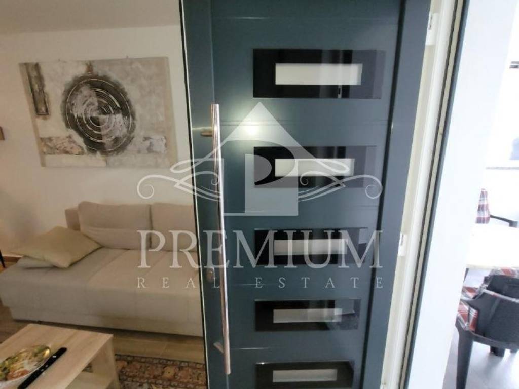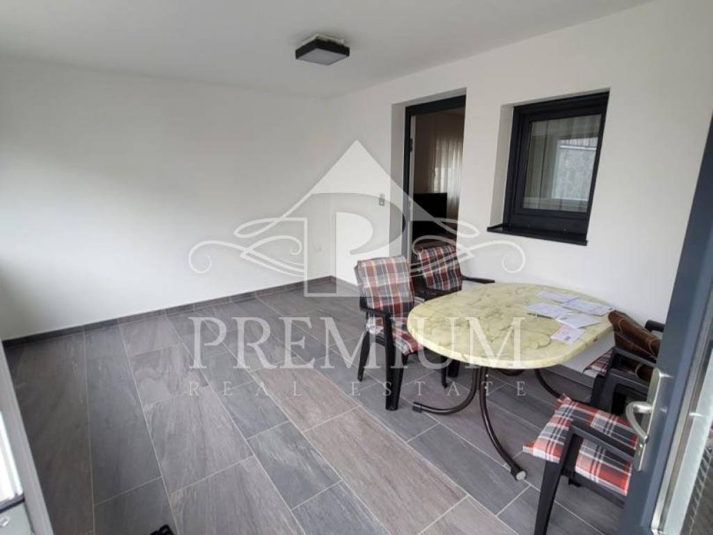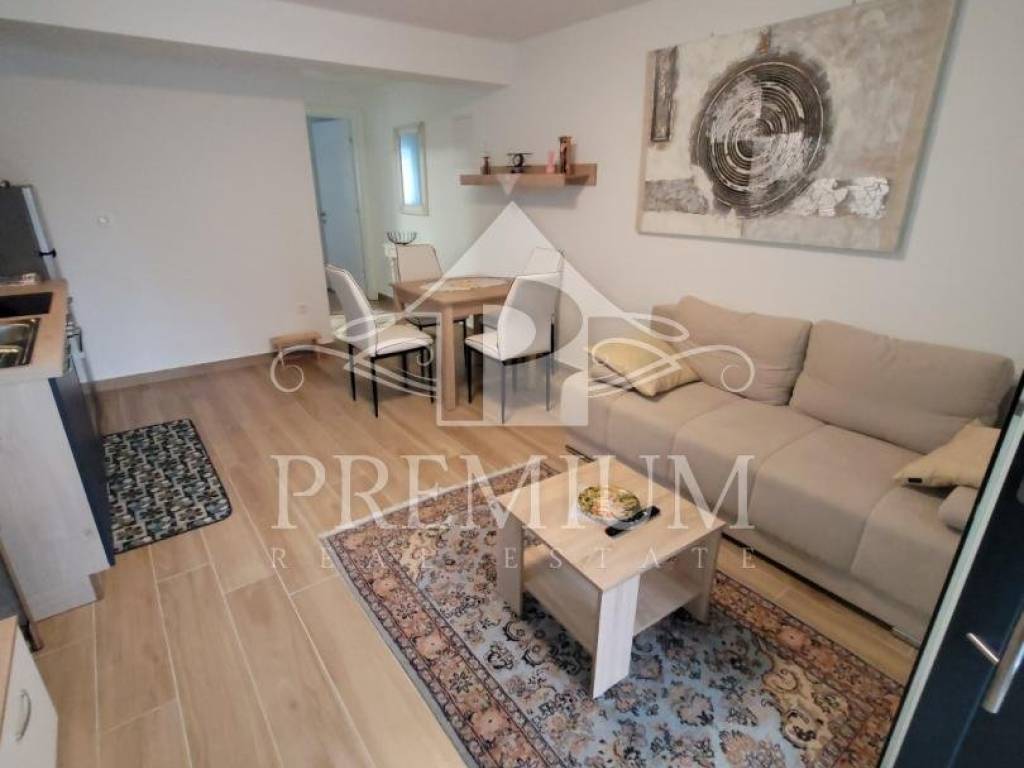 We offer an apartment located in the basement of a new building with only three apartments, located only 300 m from the sea. The apartment consists of a hallway, a bedroom, a kitchen, a dining room and a living room, and a bathroom. The apartment has a covered terrace of 9.59 m2 and a garden, it is modernly furnished and is being sold as such.