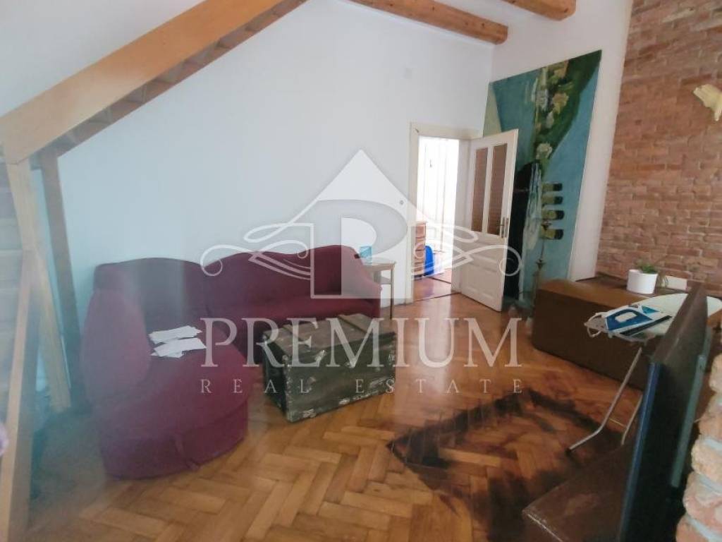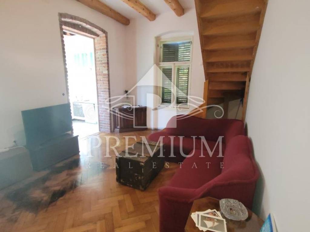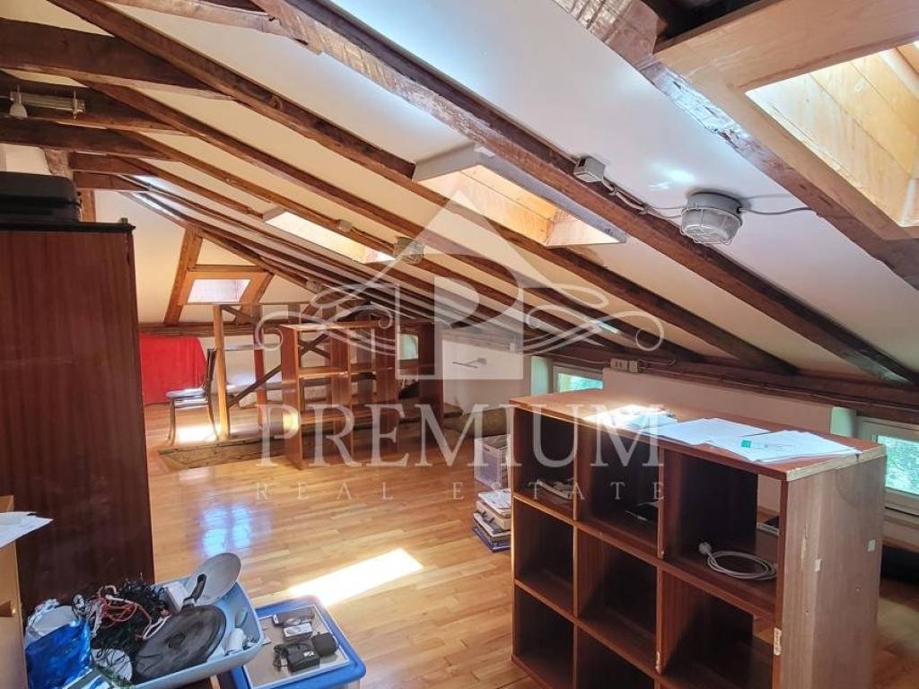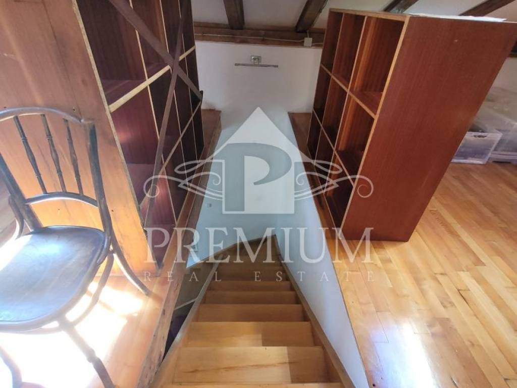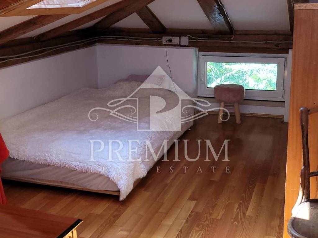 on the lower floor (1st floor) we have a living room, a bedroom, a kitchen with a dining room and two terraces (total size 15 m2) and a bathroom. An internal wooden staircase leads to the sleeping area, where two bedrooms are currently combined into one unique space with its own bathroom. That upper sleeping part is located in the cover (roof and beams are in good condition).