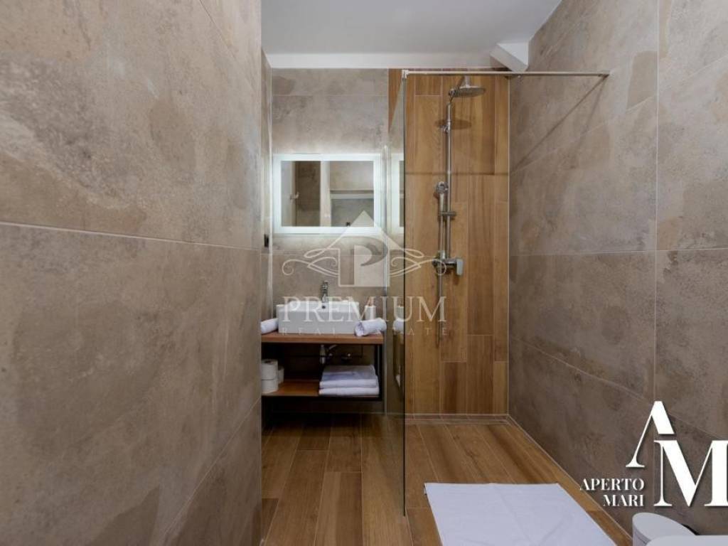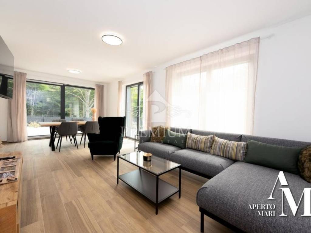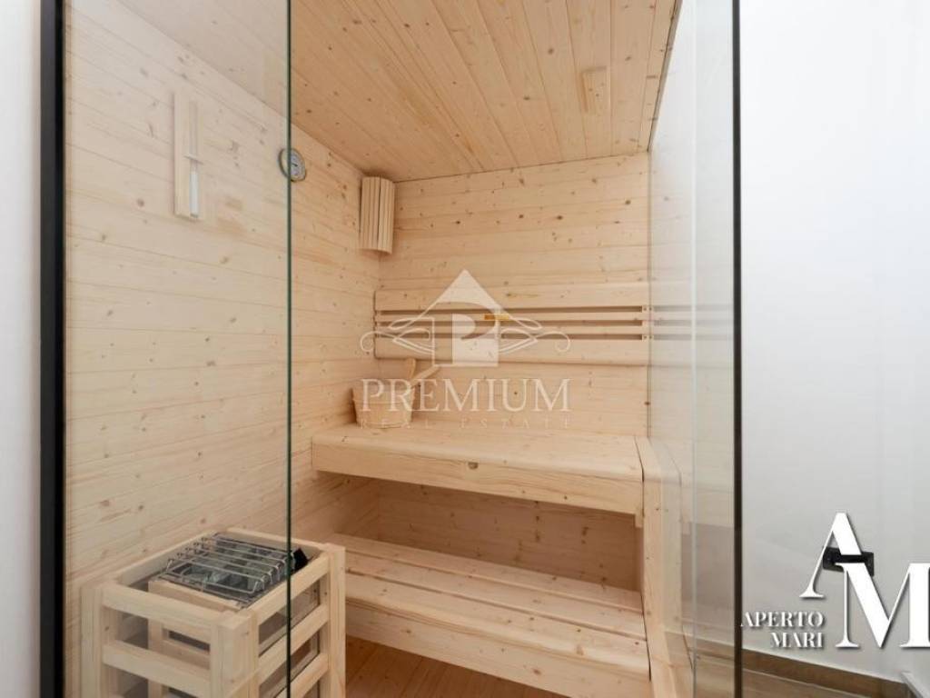 U prizemlju je smještena open space kuhinja s blagovaonicom i dnevnom sobom, ostava te gostinjski toalet. Na istoj etaži je i mini wellness zona sa saunom, velikom hidromasažnom kadom i zonom za opuštanje. iz dnevnog boravka postoji izlaz na vanjsku terasu i dvorište sa mjestom za roštilj.