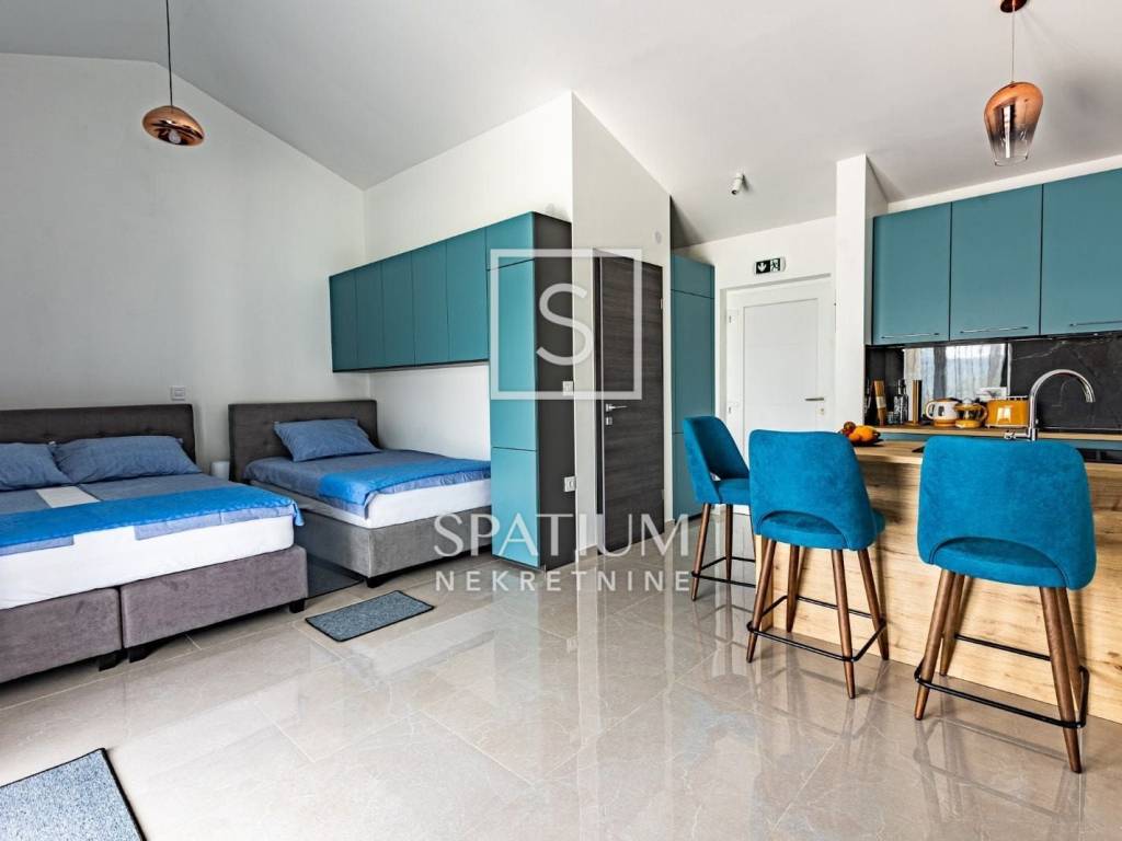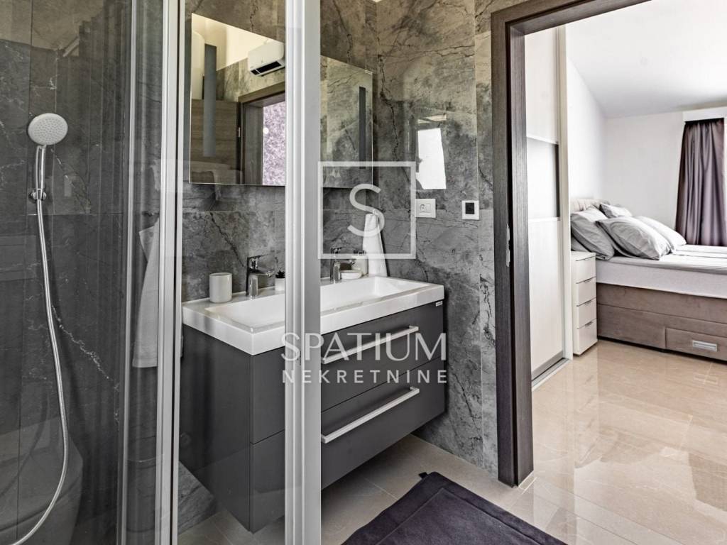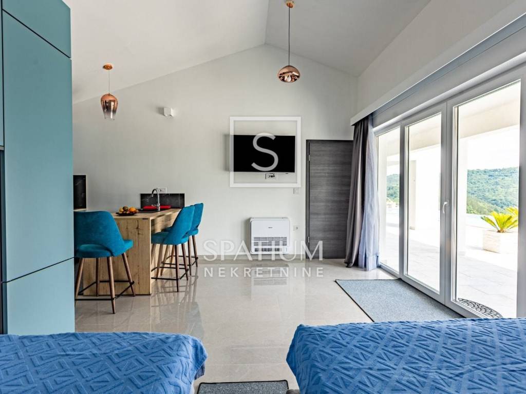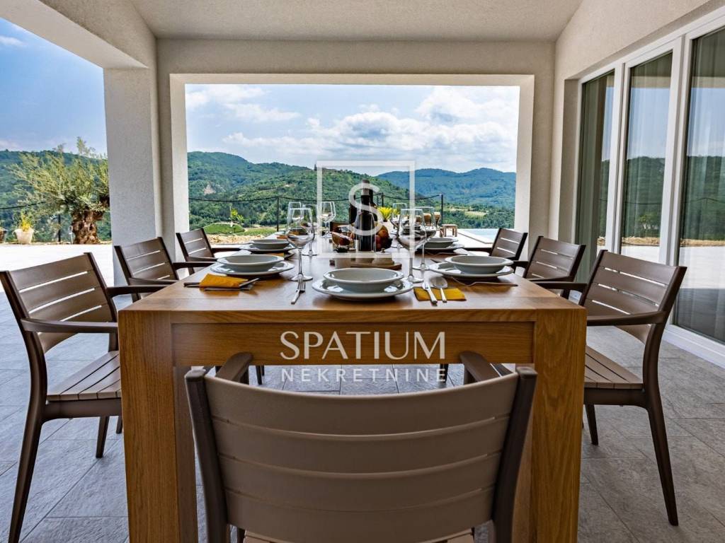 DRAGUĆ, in the offer we received a luxurious property with a garden of 20,000 m2 in the surroundings of Motovun, Cerovlje and Hum. The villa consists of two floors, ground floor and first floor with a total area of 299.56 m2. In addition to the central part, there is also an auxiliary facility with an area of 87m2. The ground floor of the villa consists of an "open space" living room with kitchen and dining room, two toilets, a storage room and a smaller room under the stairs designed for a sauna. The beautiful covered terrace is accessed from the kitchen and living room, where there is a 40m2 "infinity" swimming pool with massage, a waterfall and a view of the entire property and the surrounding hills. On the first floor, which is reached by an internal staircase, there are two bedrooms, each with its own "en suite" bathroom and a beautiful large panoramic terrace that is connected to both rooms. In addition to the villa on the ground floor, there are three apartments in a row, two of which are 33m2 and one of 18m2, while behind the villa there is an auxiliary building with an area of 87m2 divided into two parts, one of which serves as an apartment of 43.5m2, while the other is recreational - fun zone (gym, billiards, tavern). On the fenced plot there are approximately 250 olive trees of autochthonous varieties and a large number of Mediterranean plants, as well as parking for twelve vehicles. During construction, only high-quality materials were used and the interior is luxuriously equipped with custom-made furniture. Video surveillance with the possibility of control via smartphone, alarm system and remote control of the entrance door are installed. A unique property that offers the possibility of engaging in tourism with a significant annual yield or as an oasis of peace for everyone who wants true rest, luxury and comfort. Due to its exceptional beauty and picturesqueness, Draguć was often used as a film backdrop. Many films were shot here. In some, the small town was the scene of the action, and in others it just lent sights and environments. Many film crews and actors passed through the streets of Draguć, and among them were Karl Malden, Michael York, Nastassja Kinski, Demian Nash, Ena Begović, Mira Banjac, Pavle Vujisić, Milan Štrljić, Boris Dvornik, Zvonimir Lepetić... The films Marija, Letači veliko neba, Mandrin, Suton, Melita, Libertas, La Femme Musketeer and many others were filmed here. For other information, please contact us with confidence. Sanjin Latinčić Licensed agent +385 91 28 99 599 sanjin@spatium.hr Spatium nekretnine +385 51 272 903 info@spatium.hr