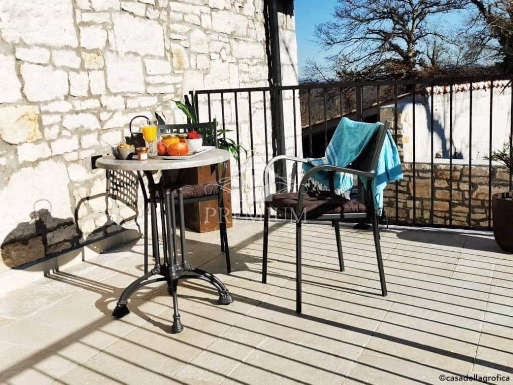 A traditional Istrian "baladur" adorns the entrance to the house, and several terraces in the courtyard are discreetly arranged to ensure privacy and space for enjoyment.