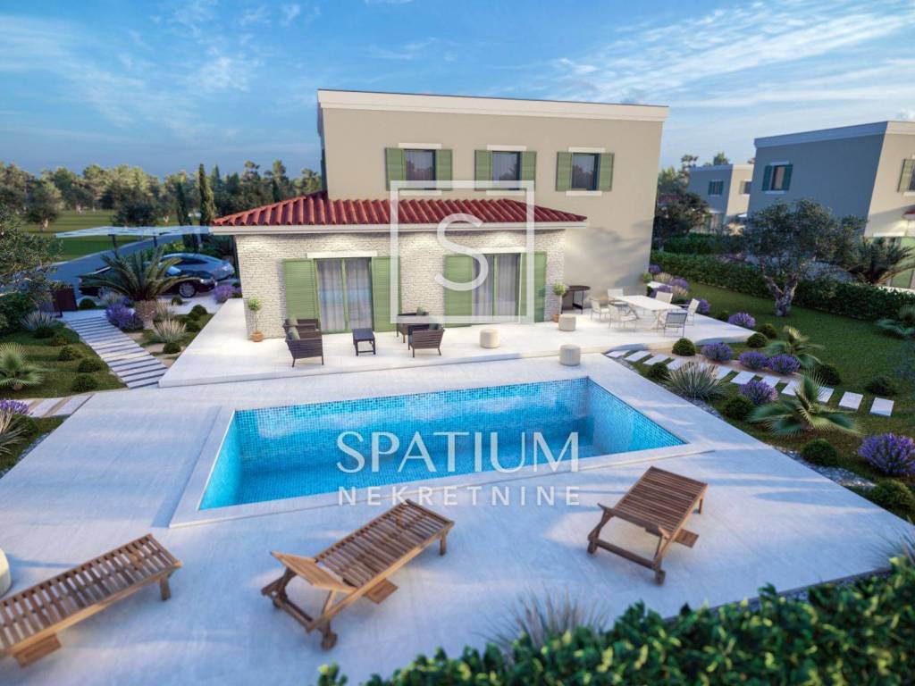 POREČ - GEDIĆI, we have received an excellent house in a new building with a swimming pool near the sea. The property is located in an excellent location in a small complex of five almost identical houses, only a ten minute drive to the first beach. It consists of a ground floor and a first floor with a total interior area of 154m2. On the ground floor there is an entrance hall, boiler room, laundry room/technical room, guest toilet, bedroom, bathroom and "open space" living room with kitchen and dining room, from which there is access to the terrace with swimming pool and sunbathing area. An internal staircase leads to the first floor, which consists of a hallway, two bedrooms and two bathrooms. The property will be equipped with air conditioners, a heat pump, high-quality ceramics and parquet floors. There is also a covered parking lot for two vehicles on the landscaped and fenced garden. The expected date of moving in is in the middle of 2025. The location, quality materials and renowned investor/contractor make this property an excellent choice. Poreč is a city located in the heart of the western coast of Istria. A city of culture, tourism, sports and entertainment, awarded multiple times for its orderliness and cleanliness. Founded by the Romans, conquered by the Venetians - Poreč is a chest of historical treasures and cultural heritage lined with modern 5-star luxury in the hotels and resorts that surround it. For all other information, please contact us with confidence. Sanjin Latinčić Licensed agent +385 91 28 99 599 sanjin@spatium.hr Spatium nekretnine +385 51 272 903 info@spatium.hr