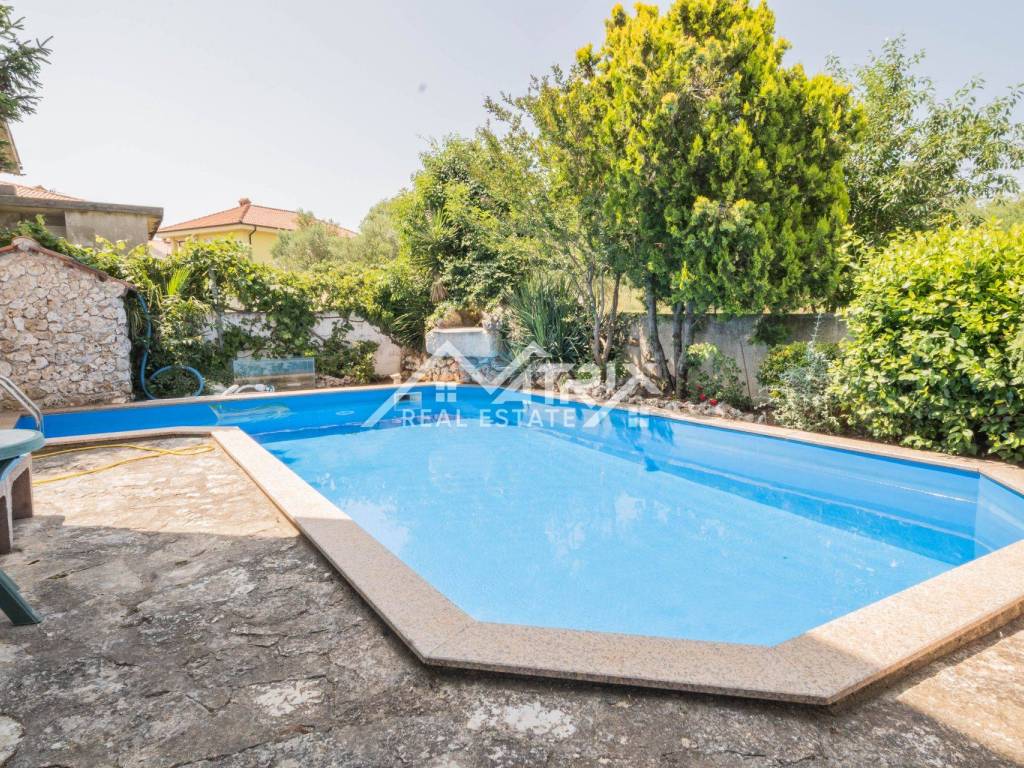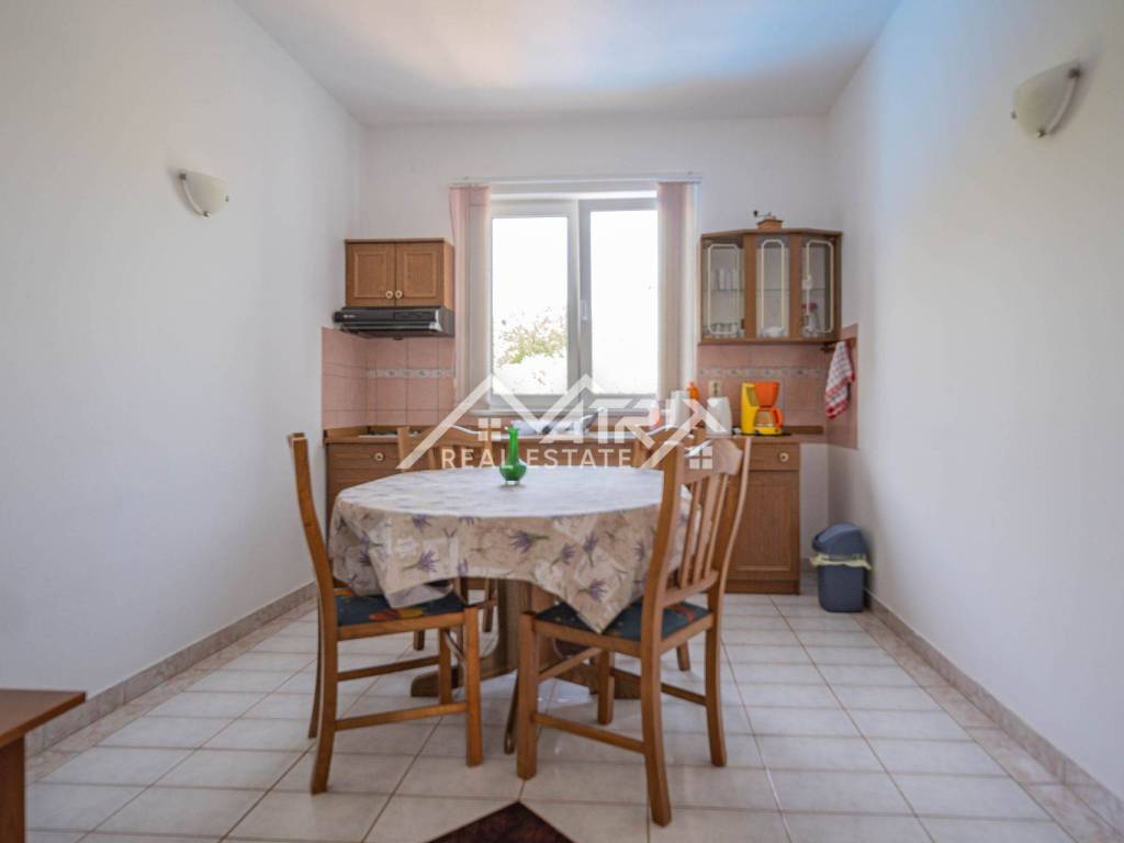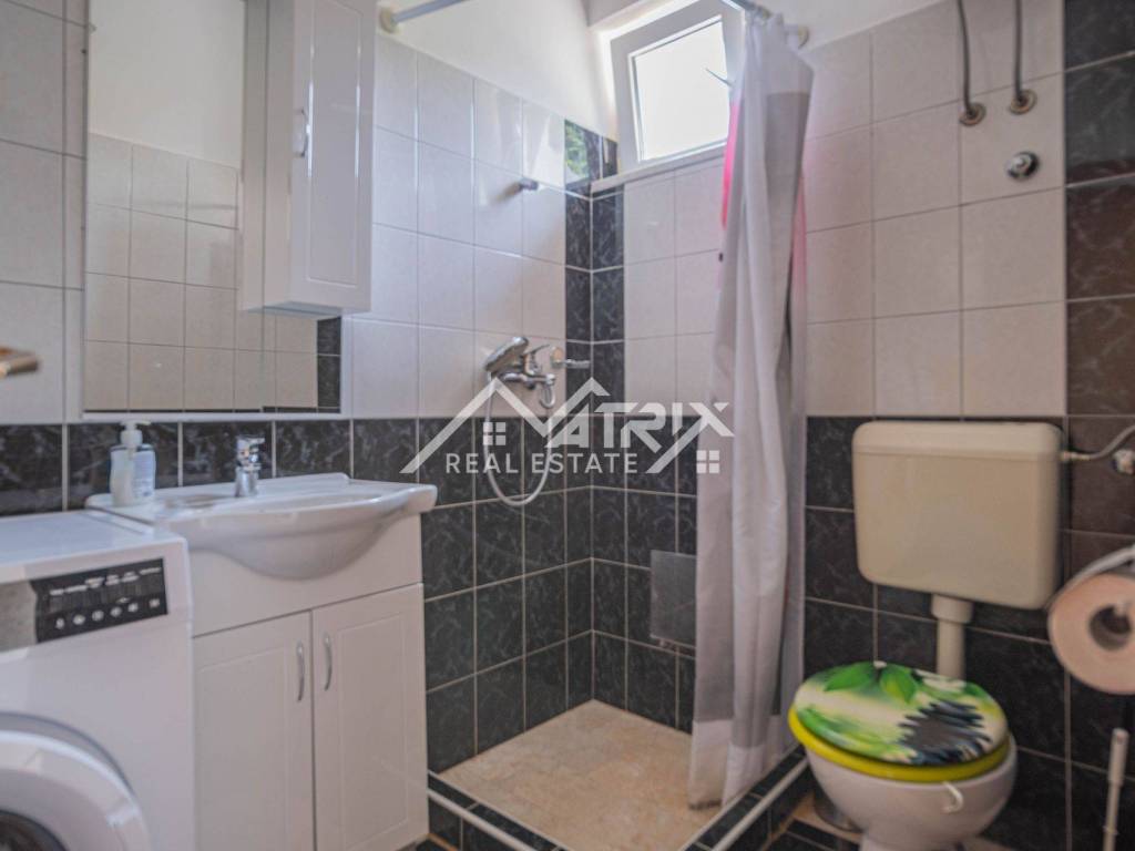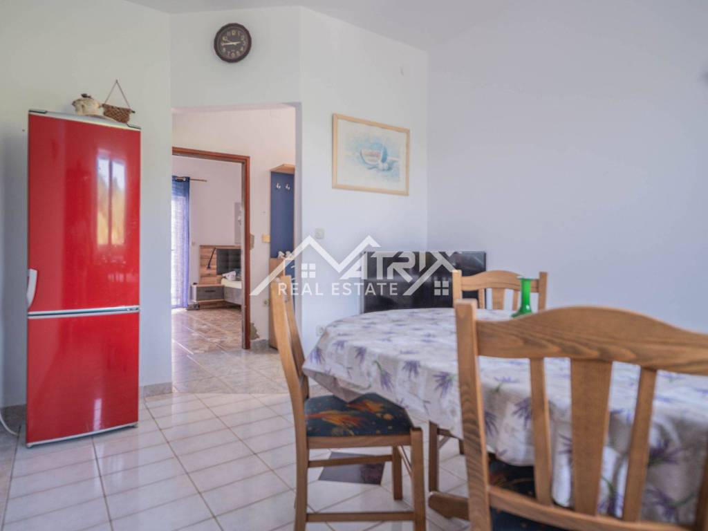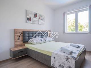 This attractive ground floor apartment is located in a peaceful area of Medulin, perfect for holidays, family living, or tourist rental. With a total area of 76.63 m², the apartment features a living room, kitchen with dining area, two bedrooms, a bathroom, and a covered terrace ideal for outdoor enjoyment. Heating and cooling are provided by air conditioning, ensuring comfort year-round. The fully fenced garden offers complete privacy and includes a private outdoor pool, a barbecue, and a dining area with benches — perfect for socializing in the open air. The apartment also has its own designated parking space. Access is via an external staircase and entrance hall, providing both functionality and privacy. The proximity to the sea and essential amenities makes this property an excellent investment and a wonderful living option in Istria.