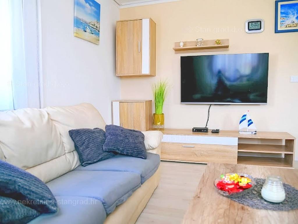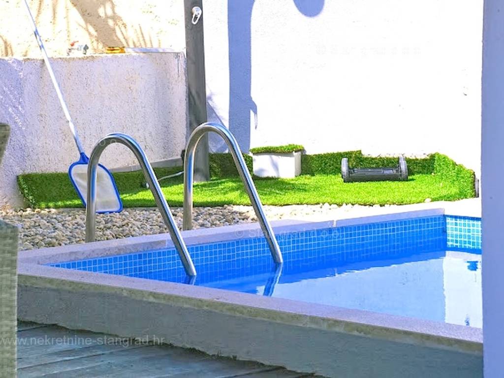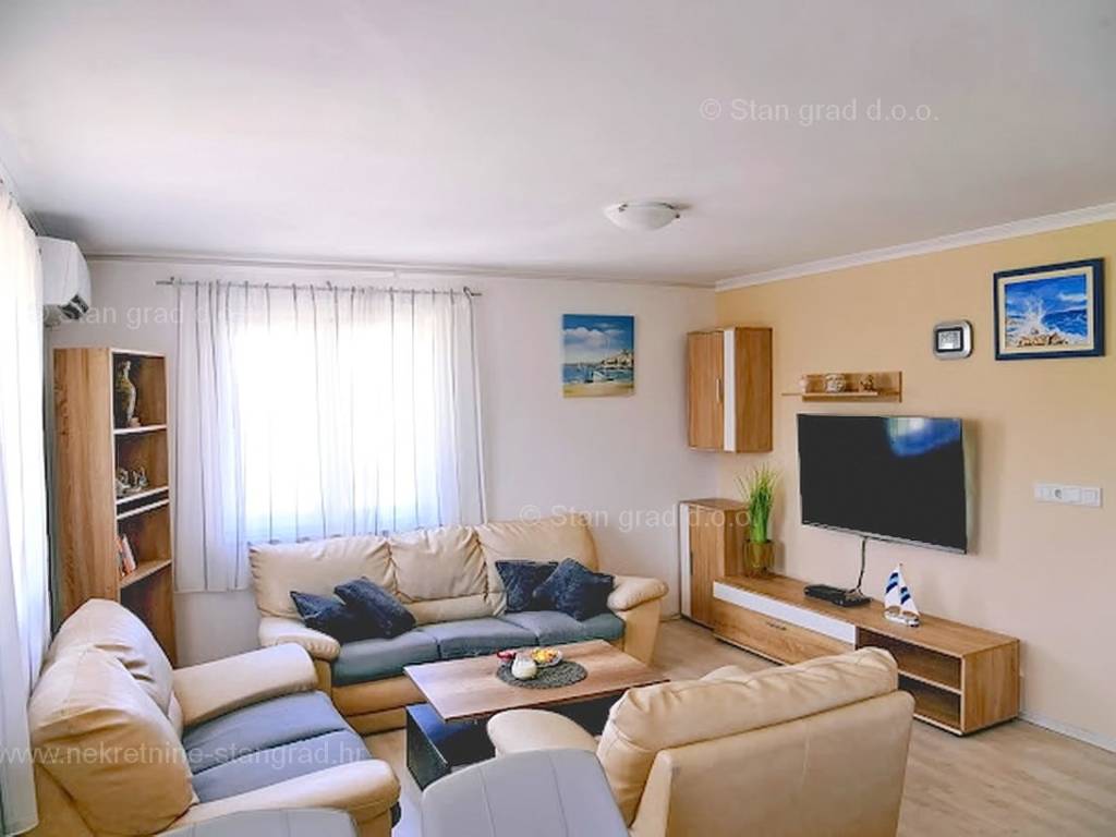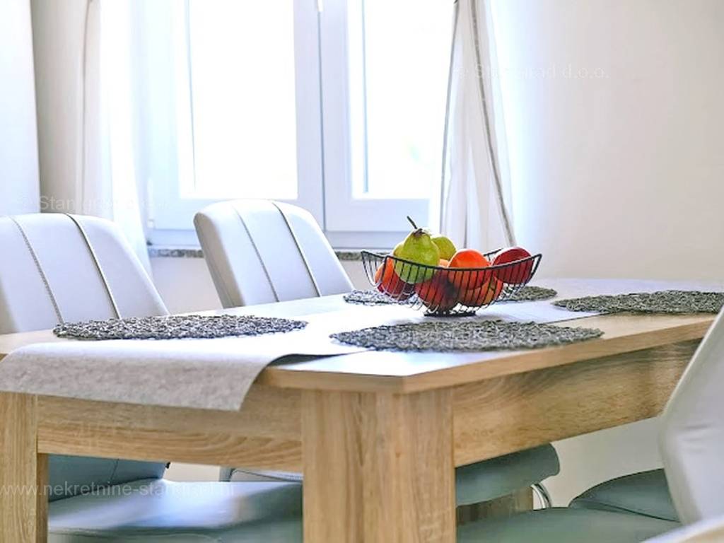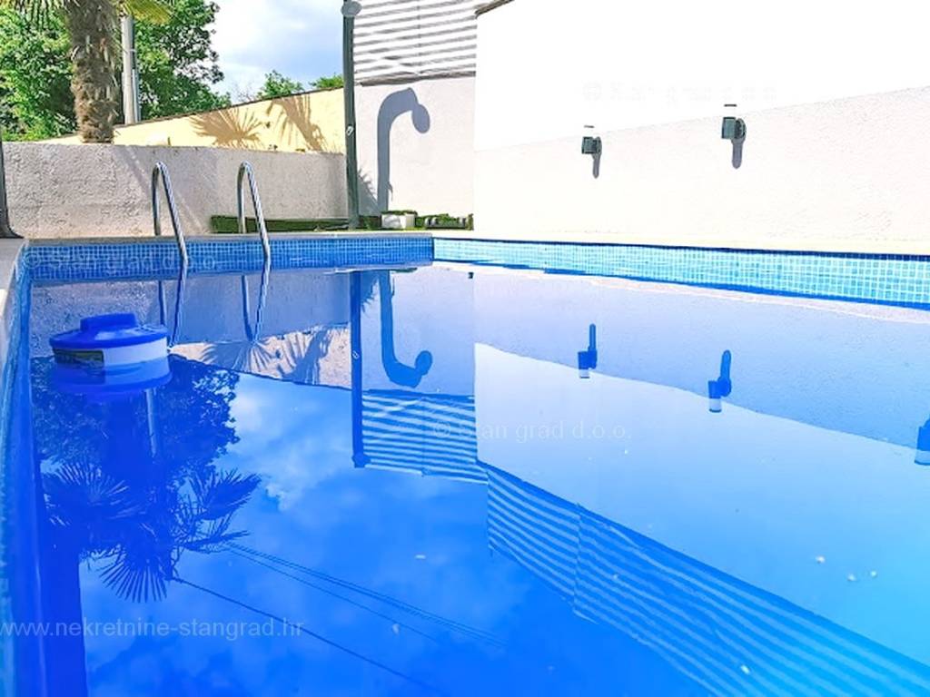 Among the excellent real estate offered by our agency in the northern Adriatic, a modern house for tourism built on the sought-after Croatian and Kvarner coastal region, the island of Krk, stands out. The prominent house is located in a beautiful location; not too far from the center of the famous town of Dobrinje. Structurally speaking, this is a single-story house. The quality-built house consists of a total of 2 useful floors in terms of space and height. The house contains two separate apartments. The property covers a total area of 160 m2. Both apartments consist of an entrance area, a bathroom, a kitchen with a dining room, a living room and two bedrooms with access to the loggia. The property with a preserved interior is equipped with a set of very good technical equipment and quality pieces of furniture. The added value of this entire building is given by the garden with a swimming pool and a sunbathing area. The spacious garden of the described property is equipped with comfortable parking for several vehicles. In addition to the above, it should be noted that the house has a beautiful view of this seaside place. This real estate is owned by a natural person and in the name of its transfer, the buyer of the house is obliged to pay real estate sales tax in the amount of 3%. The owner of the house guarantees a quick transfer of the right to dispose of the property to the buyer. Our team is waiting for you at the prominent address of the company's Kvarner office on the island of Krk. If you decide to buy a house with us, our expert team, in addition to finding the property and presenting its legal status, will also help you with the transfer of ownership rights and utility bills.