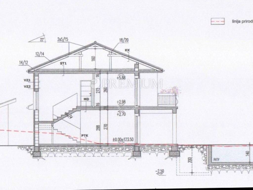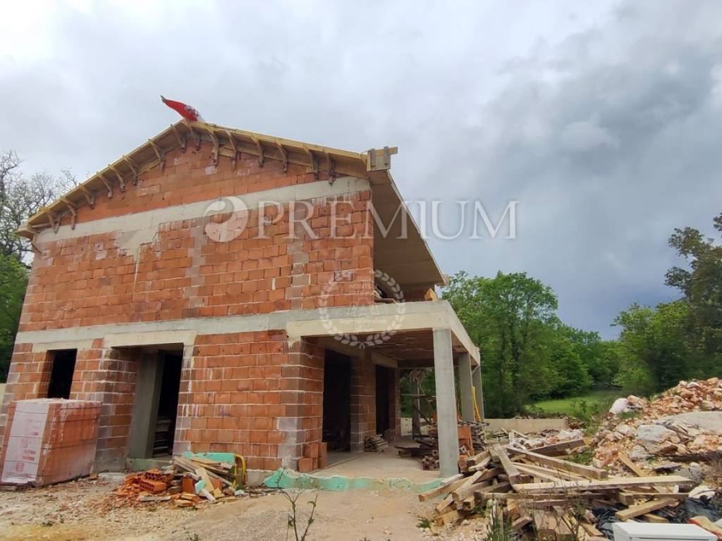 The property is sold in the Roh bau phase. In that phase, the structural part of the building with the roof, partition walls, chimney, concrete walls along the boundaries of the plot, septic tank, excavation for the swimming pool will be completed.