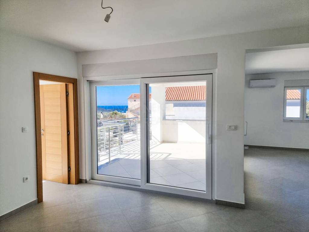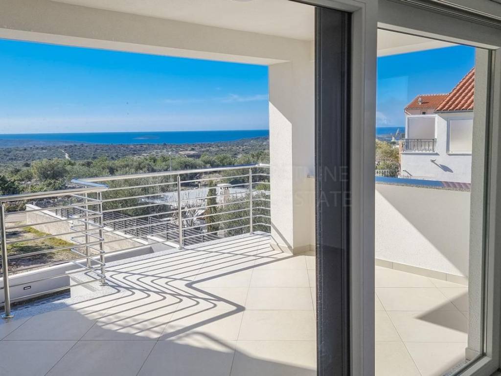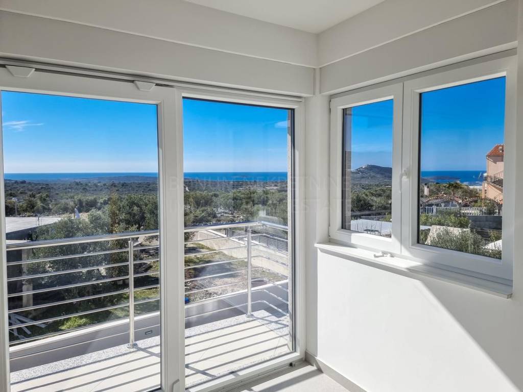 Beautiful apartment for sale in a new building, near Primosten. The apartment is located in a building with only six apartments and two entrances. The apartment itself is located on the first floor of the building. It consists of two bedrooms, two bathrooms, kitchen with dining area, living room and a beautiful terrace and balcony. The apartment itself has 78.05 m2 and the terrace has 18.47 m2 and the balcony has 2.61 m2. The apartment also has one parking space and storage in the basement of the building. The apartment is well equipped (air conditioning, electric underfloor heating in the bathroom, electric shutters and quality carpentry ..). Excellent and quality property in a quiet location. It also has a beautiful sea view.
