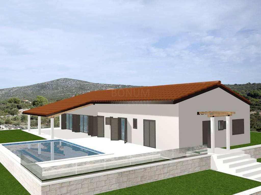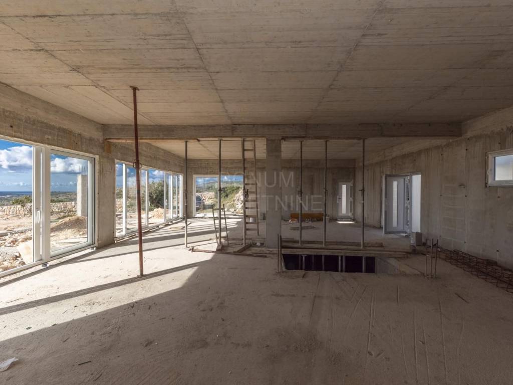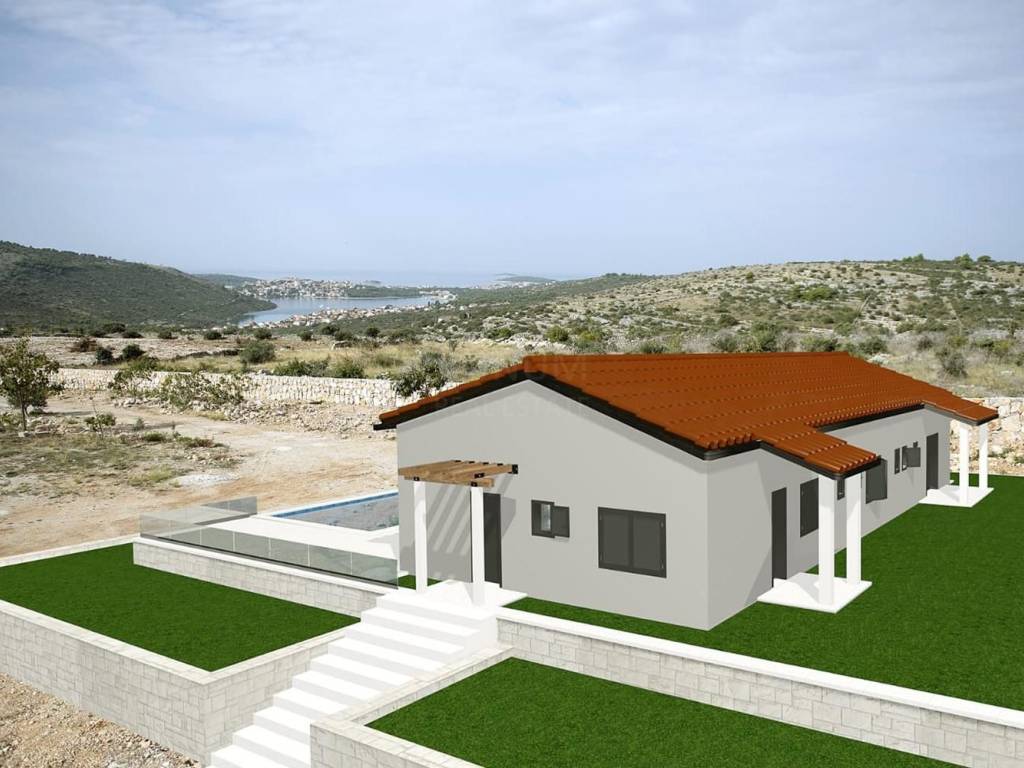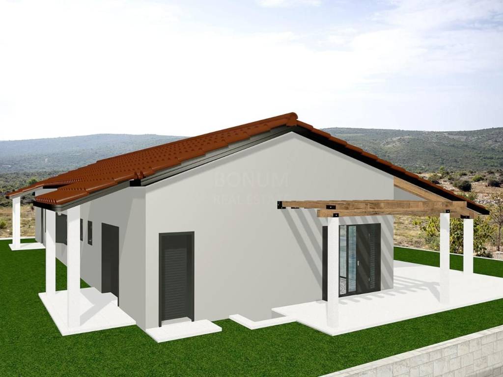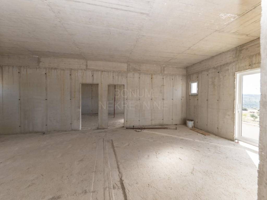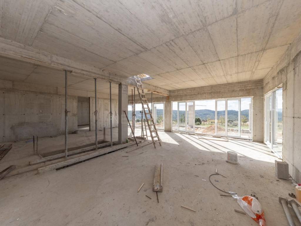 An extremely interesting house under construction with a beautiful view of the sea is for sale, Rogoznica. It is located in a quiet area, on a spacious plot of 20,000 m2. The planned property is being built for the purpose of a family farm. It consists of a basement and a ground floor and has a gross construction area of 355.85 m2. In the basement there are storage rooms for oil and wine, while on the ground floor there is a planned household in the family farm (wine and oil tasting room, two sanitary facilities, a room for serving ready-made food, a staff room and six bedrooms with bathrooms. The basement and ground floor are connected with a semicircular staircase.The rest of the area is conceived as land planted with permanent agricultural plantations in at least 70% of the area (olives, immortelles and aromatic plants). An excellent location for all those who love peace and enjoyment of the Mediterranean way of life.