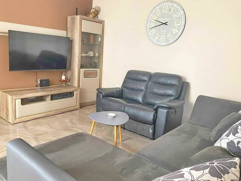 The property is divided into two separate residential units. The ground floor features a living room, kitchen with dining area, three bedrooms, and two bathrooms. This level can be reconfigured into two smaller apartments with separate entrances. The upper floor, accessed via an external staircase, includes an entrance hall, living room, kitchen with dining area, two bedrooms, a bathroom, a laundry room, and a spacious terrace perfect for outdoor living. The interior of the house is well maintained, fully furnished, and equipped with all necessary appliances, making it ready for immediate use without the need for additional investment.