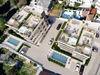 Excellent apartment for sale in a building with an elevator, Čiovo. The apartment is located on the second floor. It consists of two bedrooms, two bathrooms, a living room with kitchen and dining room in one unit, and a balcony (62.77 m2). The apartment also has one parking space and a roof terrace of 70.40 m2. The apartment is spacious and is an excellent choice either for a year-round stay or for use during the summer months. The building is well built and equipped. It is located in a quiet location and is 300 m from the sea. The town of Trogir is 4 km away, while Split Airport is only 9 km away.