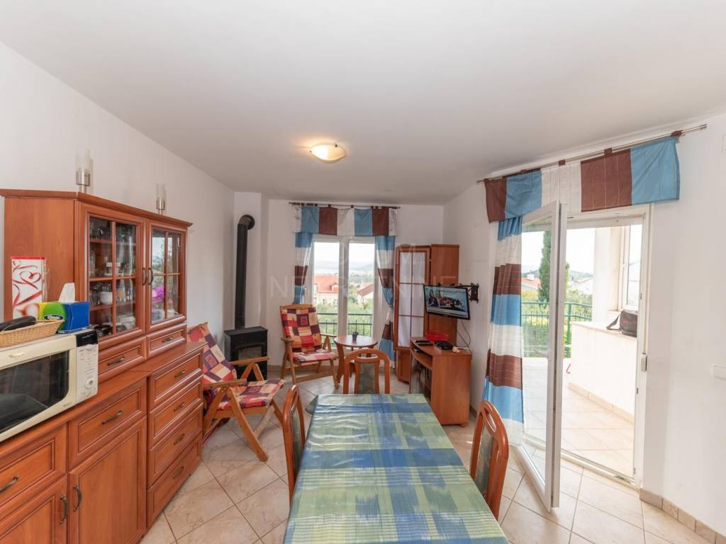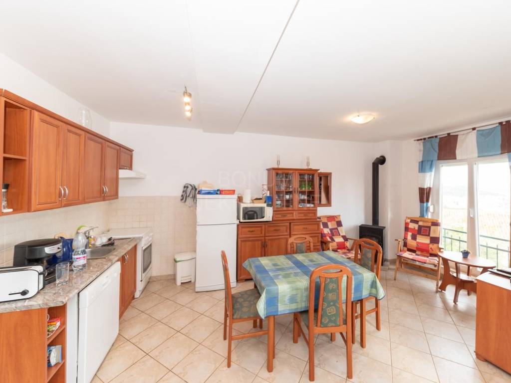 On the ground floor there is an entrance area, a comfortable living room with a kitchen and dining room in one unit, a bathroom, a storage room and a covered terrace with a sea view. Internal stairs lead to the first floor where there is another smaller kitchen, dining room, bathroom, hallway, two bedrooms, one of which has a covered balcony with a beautiful view of the sea and the city.