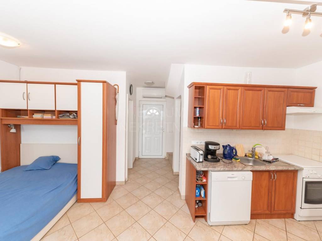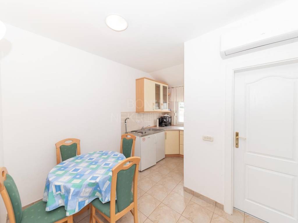 In the basement there is another large living room with a kitchen and a bathroom that can also be used as a separate apartment and has a separate entrance from the yard. In front there is a beautifully landscaped yard in greenery oriented towards the sea.
