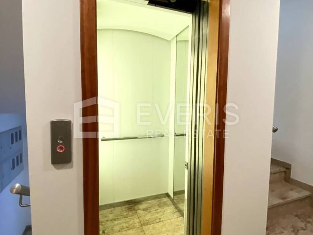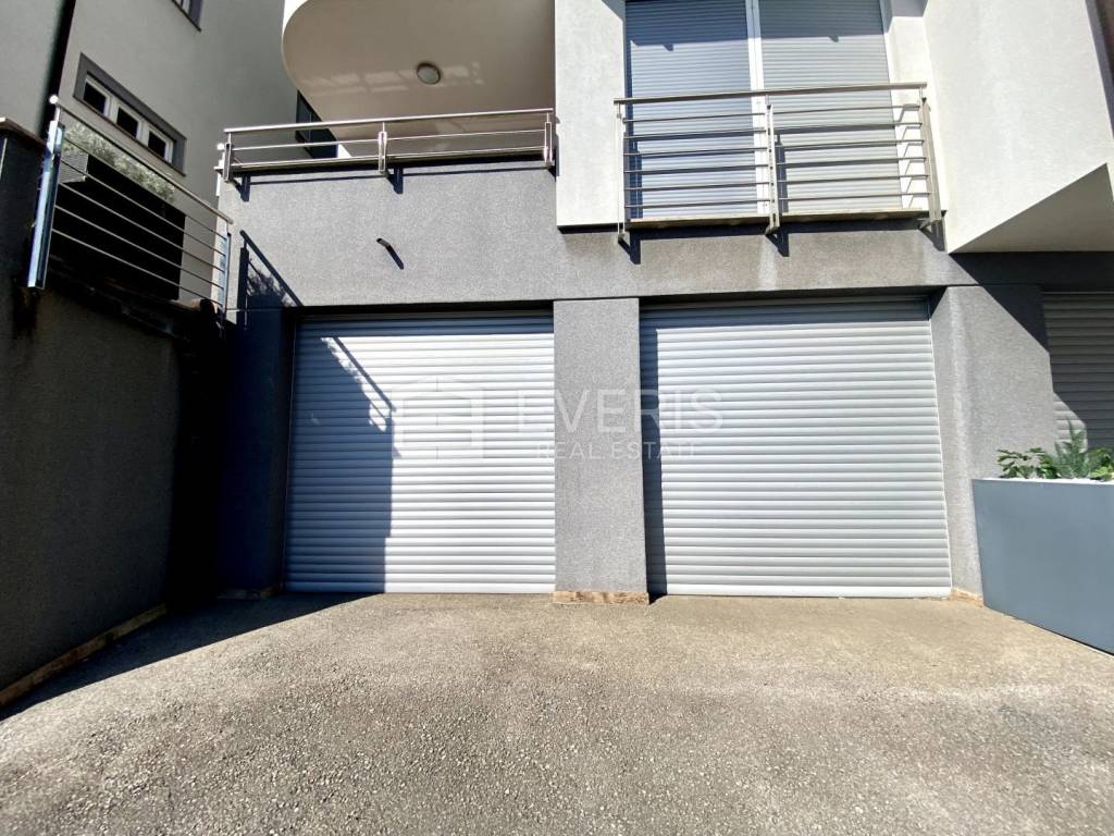 Opatija, apartment for sale 74.78 m2 in a building with an elevator consists of hallway, toilet, bathroom, two bedrooms with connected covered balcony, living room with exit to another covered balcony, dining room and kitchen in one, and independent garage space of 15 m2.