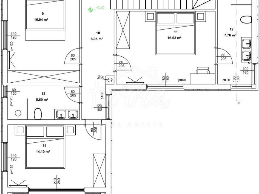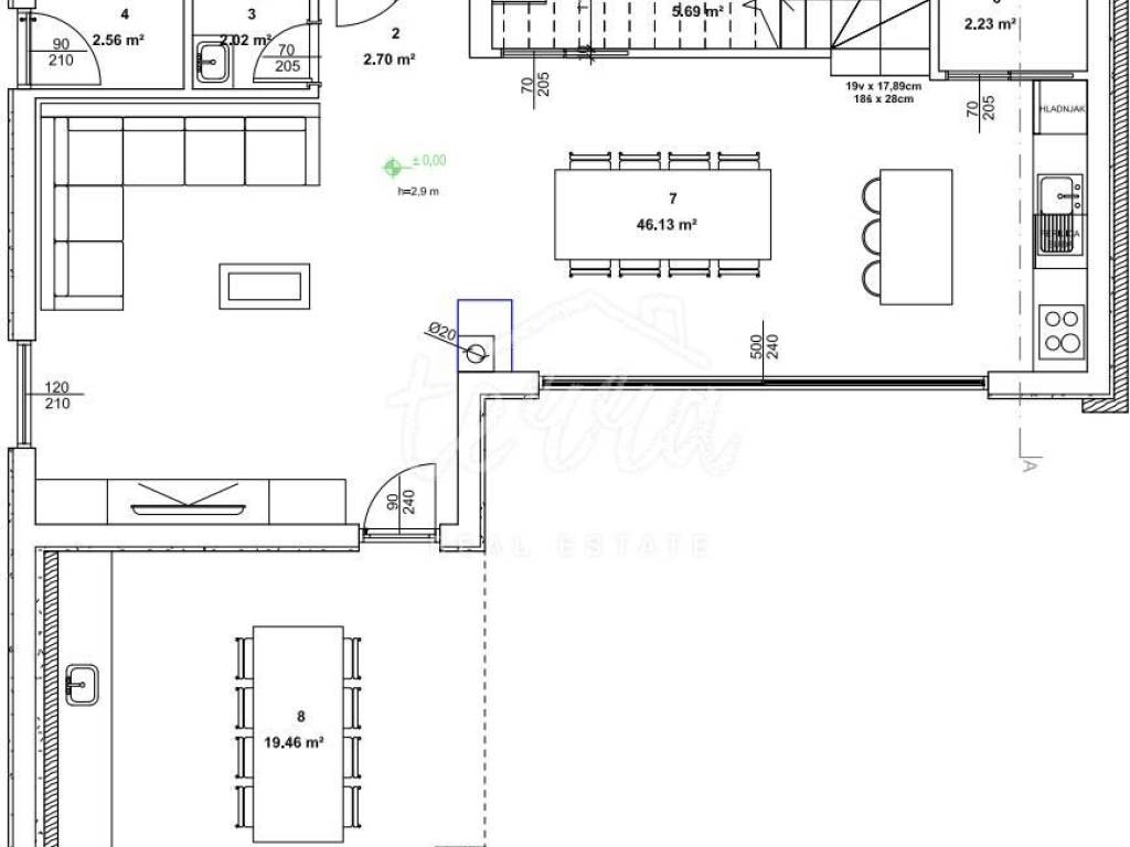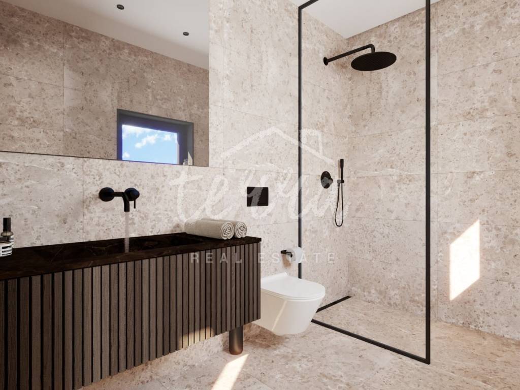 The villa is fully covered with an underfloor heating system (all rooms) with a heat pump, while in the pre-winter period heating is also possible with air conditioning inverter units. The floor is covered with high-quality brushed oak parquet.