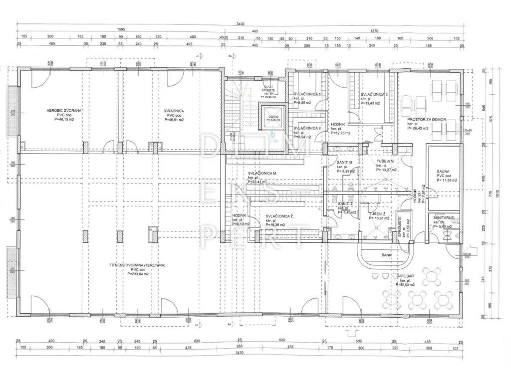 - fitness dvorane (233 m²)