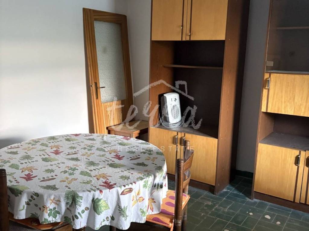 On the ground floor there is a kitchen with a dining room, a living room and a bathroom, while on the first floor there are two bedrooms with a terrace.