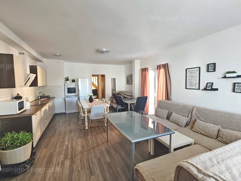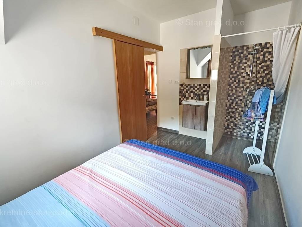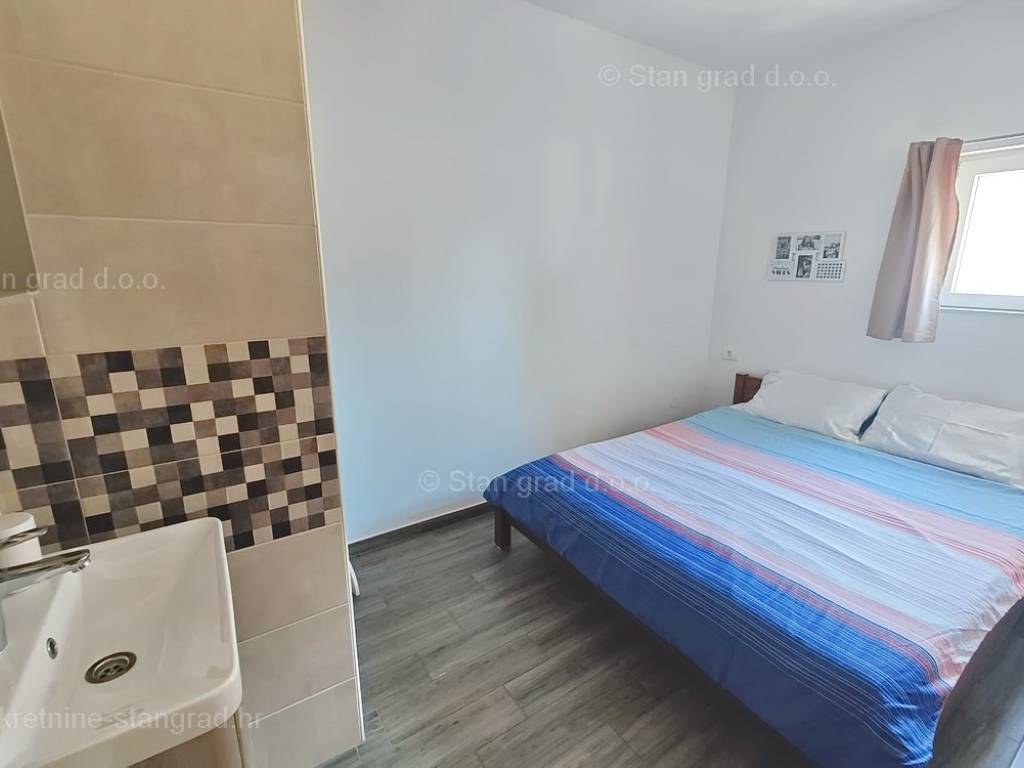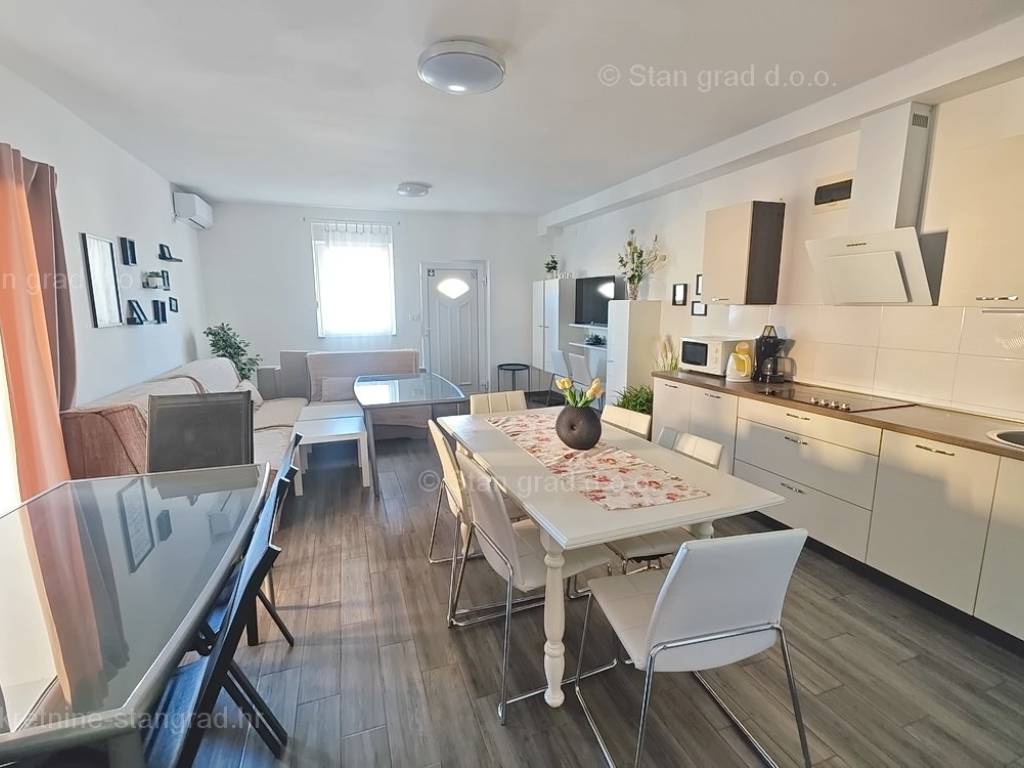 The real estate agency Stan Grad Immobilien offers for sale an interesting holiday house in attractive area of Island Krk. This holiday house in coastal town of Soline Bay benefits from an excellent location next to the sea. This pretty object finished up to high standards consists of 2 levels. Total size is 110m2. The above area includes a kitchen, dining room and living room on the ground floor, as well as 1 bedroom and a separate toilet. Upstairs are 2 bedrooms, 1 bathroom, living room, kitchenette and terrace overlooking the sea Extra feature is opening onto nicely landscaped garden with pool. The yard can accomodate 2 cars. Moreover, location of the house guarantees enjoying open sea views. Since the seller is a natural person, 3% tax applies to listed price. The seller guarantees complete property documentation and quick transfer of ownership. Experienced agents of the real estate agency Stan Grad Immobilien ensure comprehensive support to their local and foreign clients through out entire process.