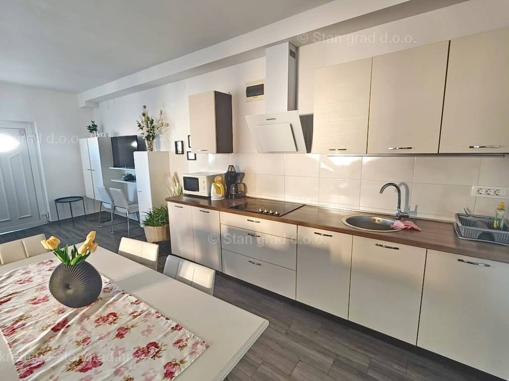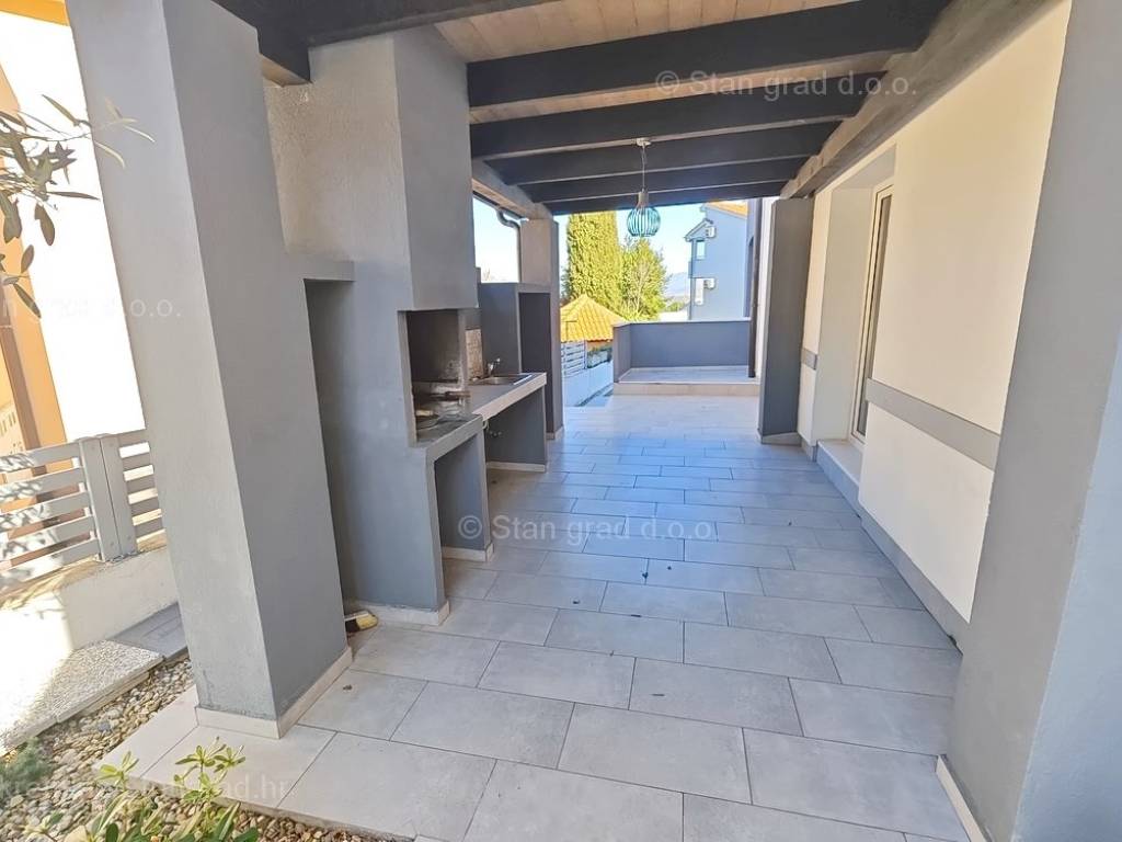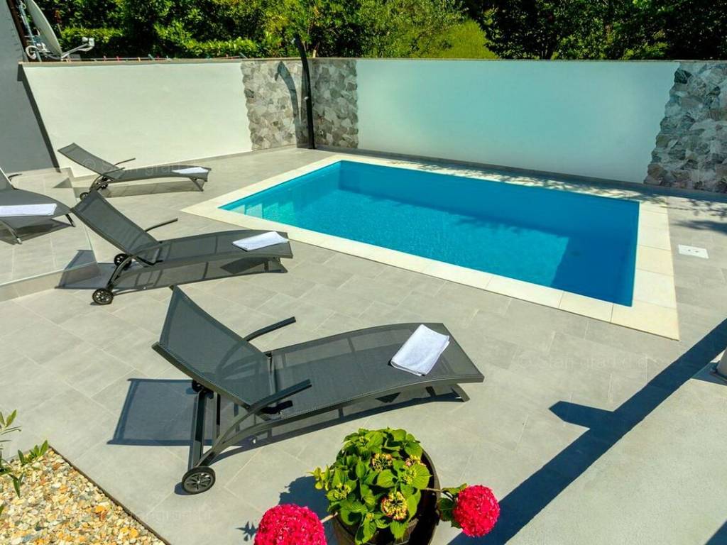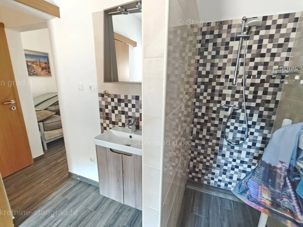 The real estate agency Stan Grad Immobilien offers for sale an interesting holiday house in attractive area of Island Krk. This holiday house in coastal town of Soline Bay benefits from an excellent location next to the sea. This pretty object finished up to high standards consists of 2 levels. Total size is 110m2. The above area includes a kitchen, dining room and living room on the ground floor, as well as 1 bedroom and a separate toilet. Upstairs are 2 bedrooms, 1 bathroom, living room, kitchenette and terrace overlooking the sea Extra feature is opening onto nicely landscaped garden with pool. The yard can accomodate 2 cars. Moreover, location of the house guarantees enjoying open sea views. Since the seller is a natural person, 3% tax applies to listed price. The seller guarantees complete property documentation and quick transfer of ownership. Experienced agents of the real estate agency Stan Grad Immobilien ensure comprehensive support to their local and foreign clients through out entire process.