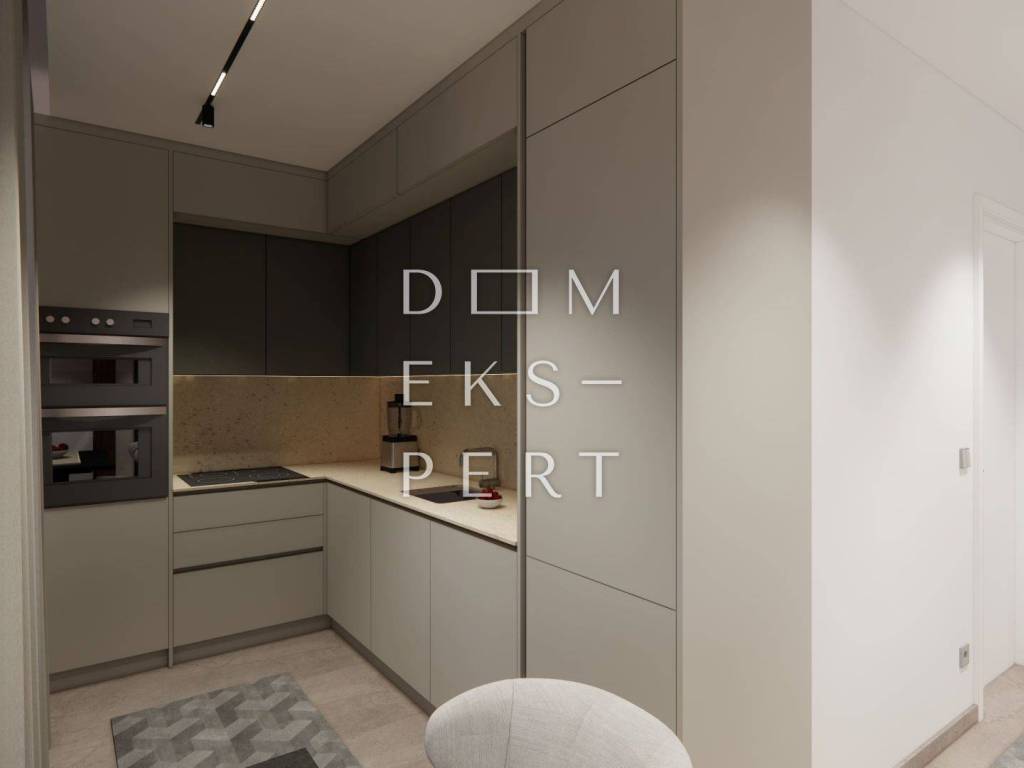 The apartment is oriented to the west, north, and east, ensuring plenty of natural daylight through large glass walls. The spacious terrace combined with a landscaped private garden provides an ideal outdoor living and relaxation area.